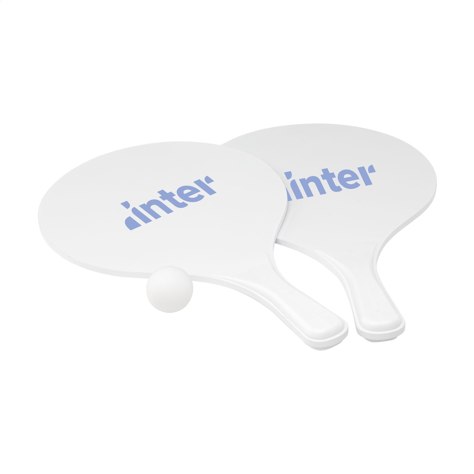 Ensemble de plage sportif : 2 raquettes en bois MDF avec poignées en plastique PP avec une petite balle en caoutchouc. Chaque ensemble est livré dans un filet de rangement en maille. REMARQUE : Pour une impression en 2 couleurs sur les raquettes, aucun alignement parfait des couleurs ne peut être garanti - cela n’est possible que si les couleurs ne se touchent pas.