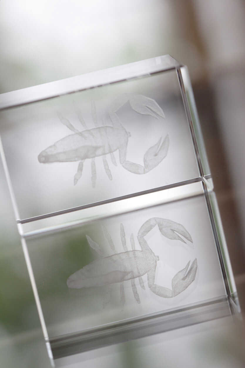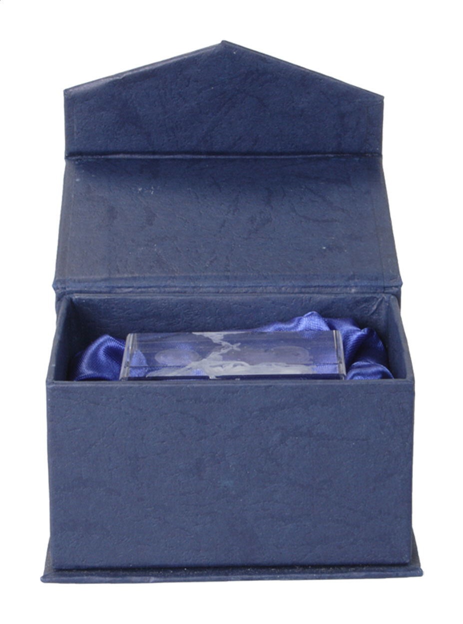 Bloc en verre. Livré dans boîte cadeau bleue.