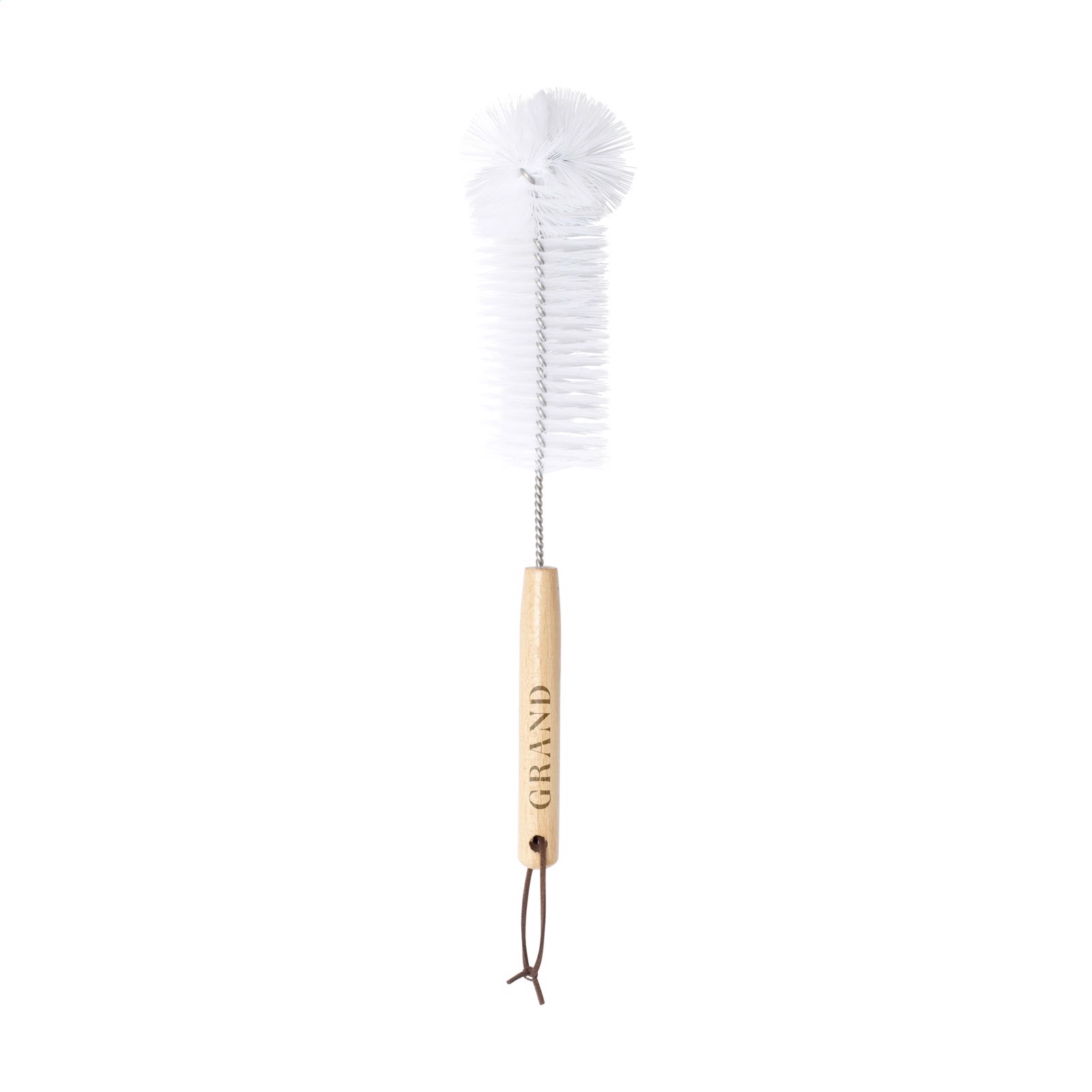Goupillon de nettoyage conçu pour nettoyer les bouteilles. Convient également aux bouteilles avec un goulot étroit. La tête de la brosse est incurvée ce qui permet de nettoyer facilement le fond intérieur des bouteilles. Fournie avec un manche en bois et une boucle de suspension.