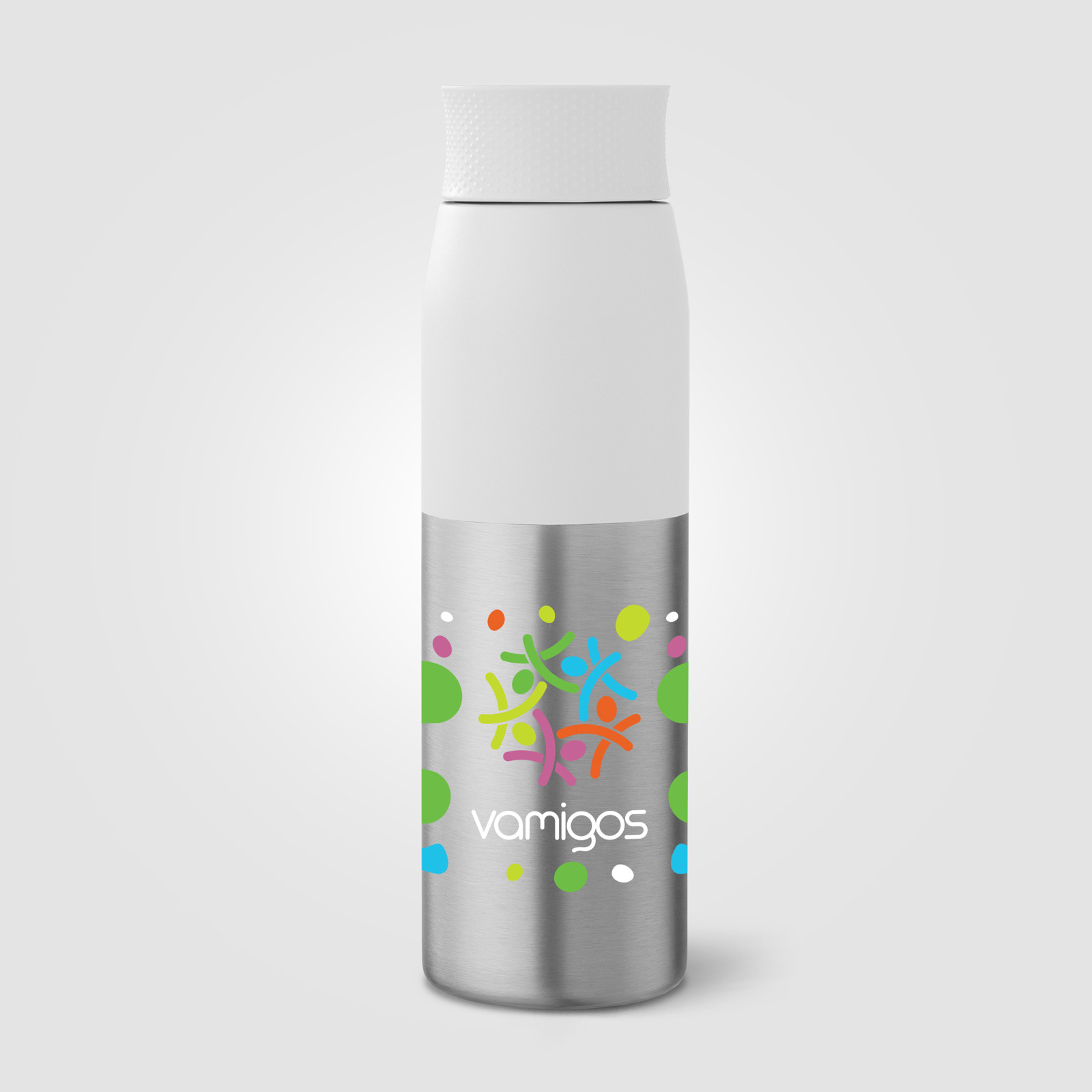 Bouteille Borealis à couvercle à torsion en acier inoxydable recyclé - 650 ml - Blanc / Sérigraphie