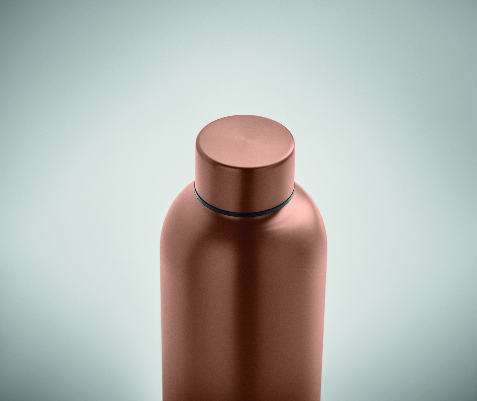 Bouteille à vide isolant à double paroi en acier inoxydable recyclé (90% inox recyclé et 10% inox). Capacité de 500 ml. Anti fuite.