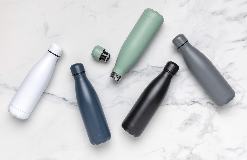 Bouteille 500ml en acier inoxydable avec vide d’air. Garde le chaud jusqu’à 5h et le froid jusqu’à 15h. Capacité 500ml.