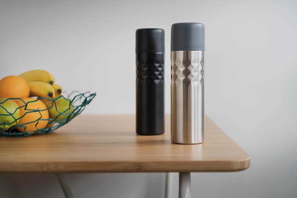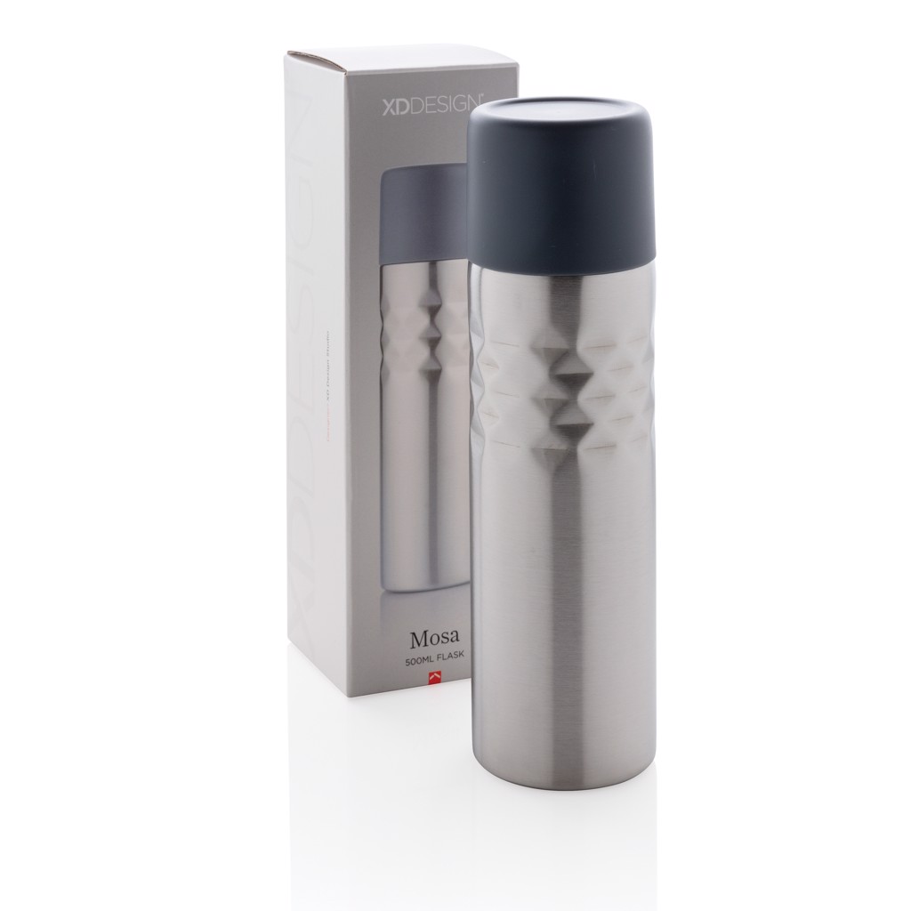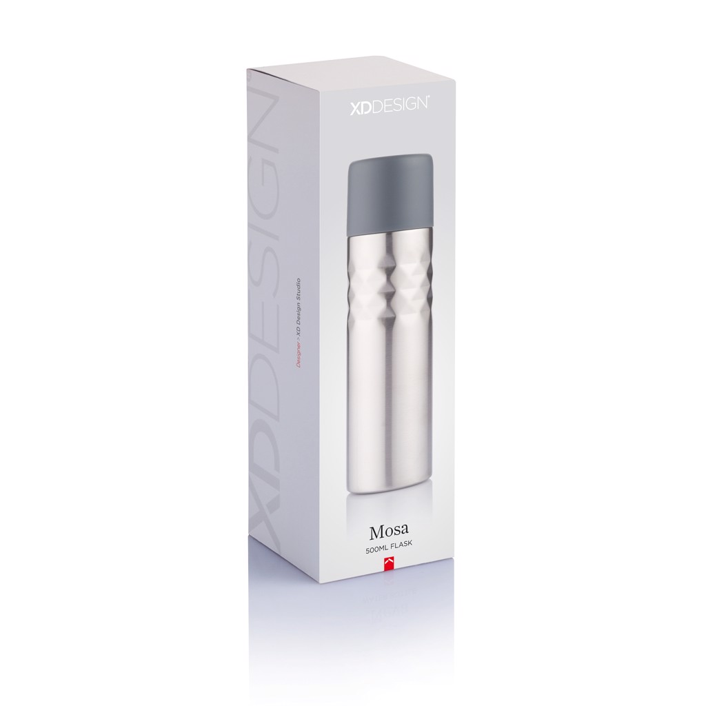 Mosa est une bouteille isotherme de 500ml avec double parois en acier inoxydable 201 et couvercle en PP. Modèle déposé®