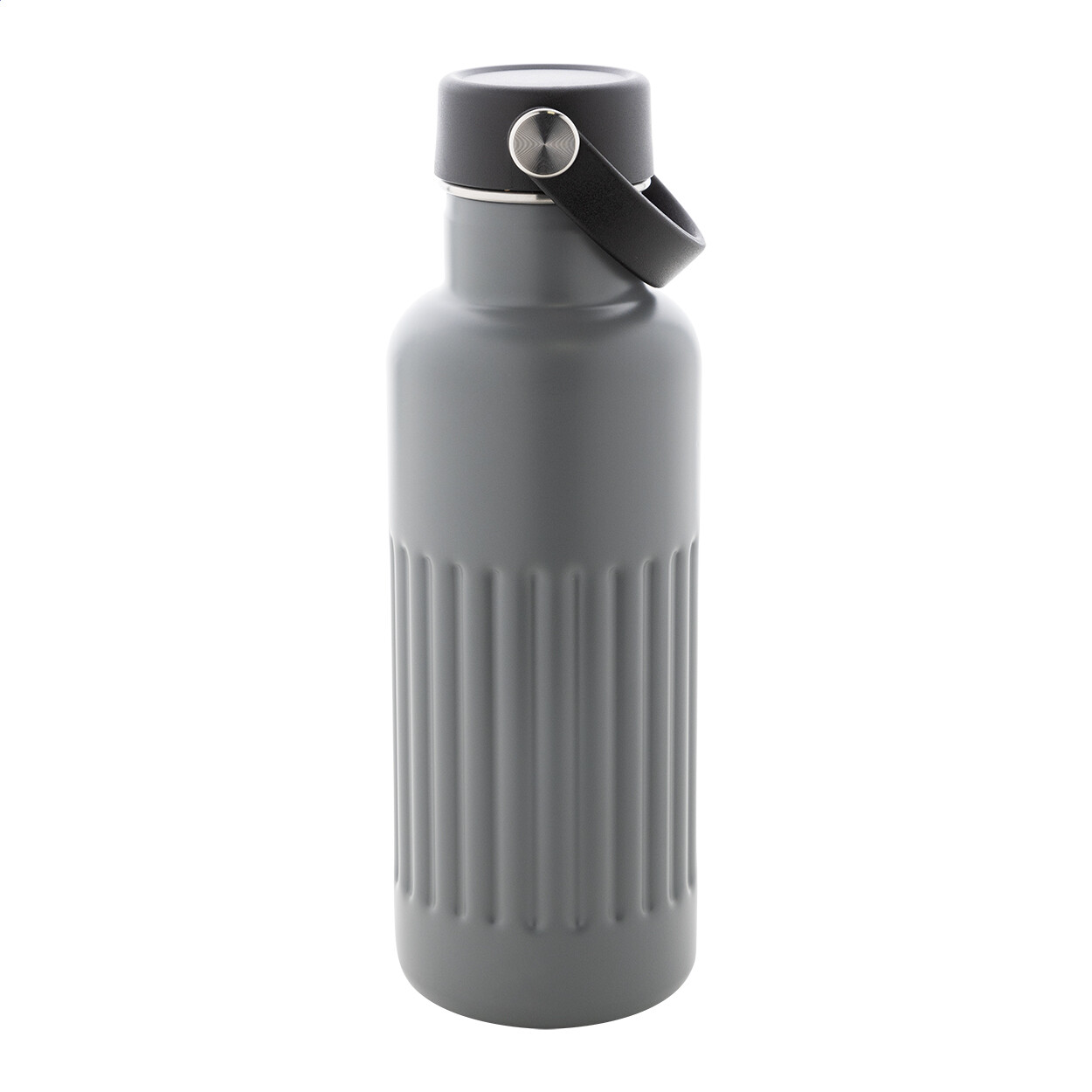 Bouteille isotherme à double paroi en acier inoxydable recyclé avec anse en plastique PP. 500 ml.