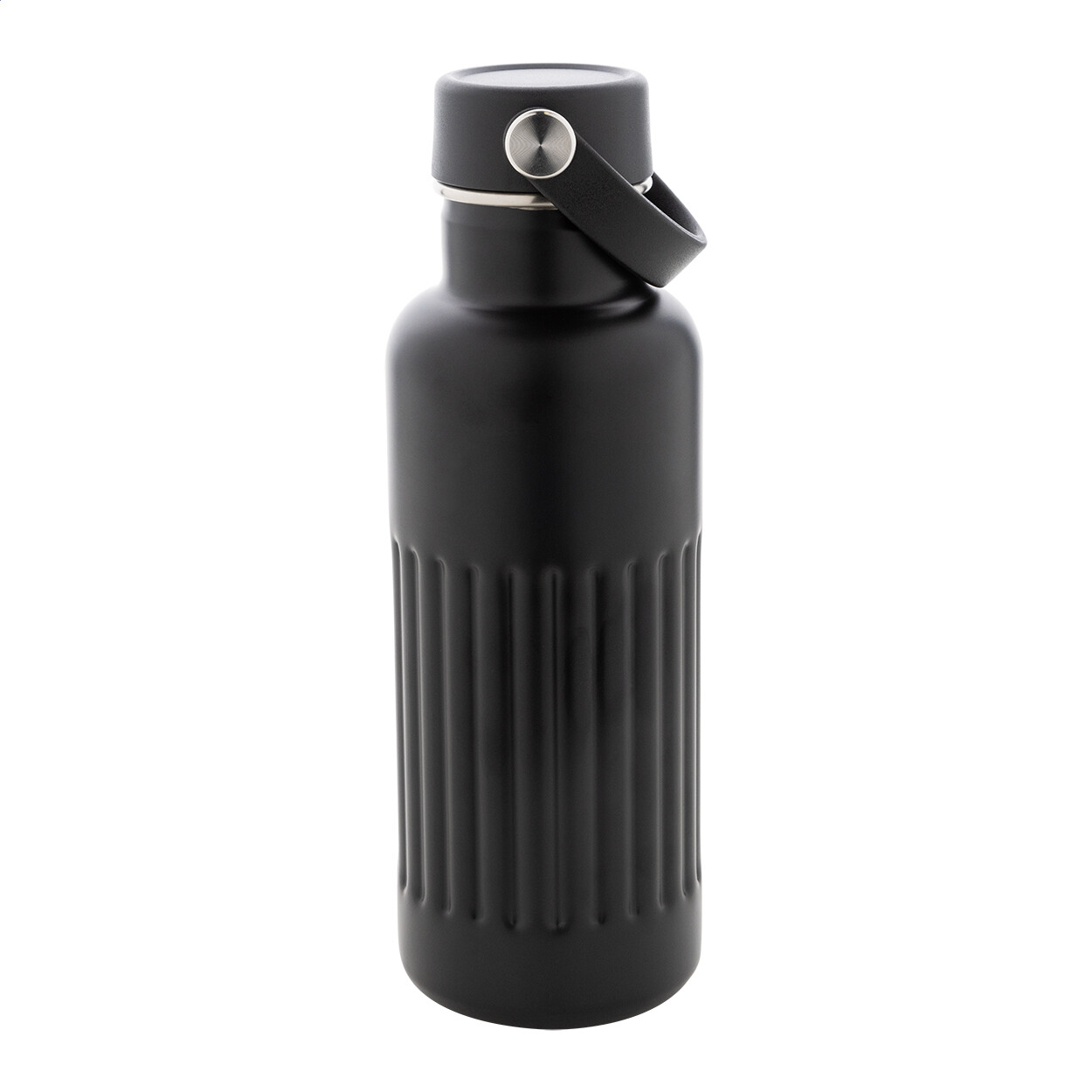 Bouteille isotherme à double paroi en acier inoxydable recyclé avec anse en plastique PP. 500 ml.