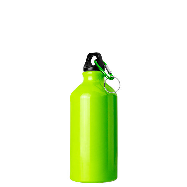 Bouteille en aluminium de 500 ml avec finition brillante et bouchon à vis. Inclut mousqueton et anneau. Ne pas utiliser avec les boissons acides ou gazeuses.*Seule la variante argent permet la sublimation