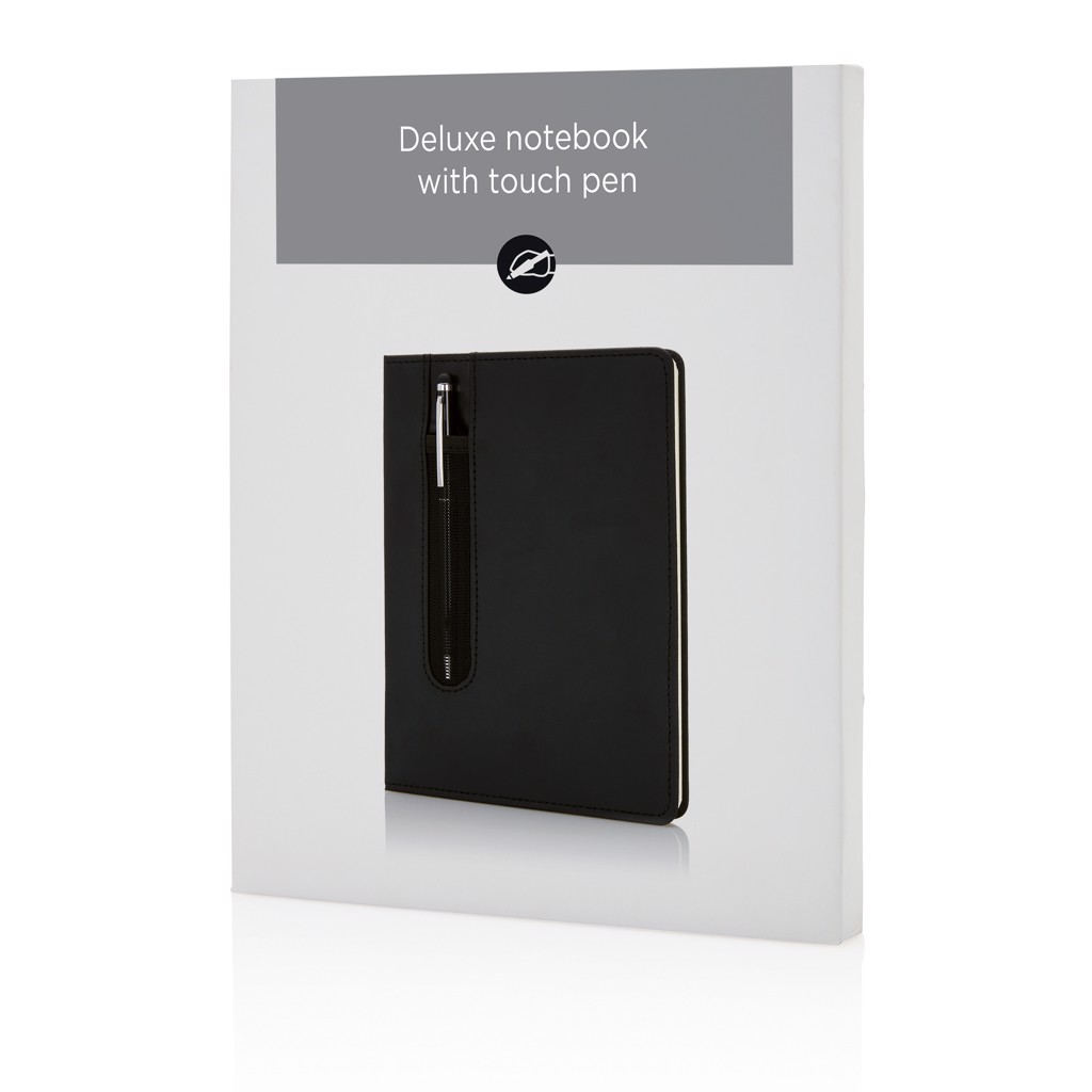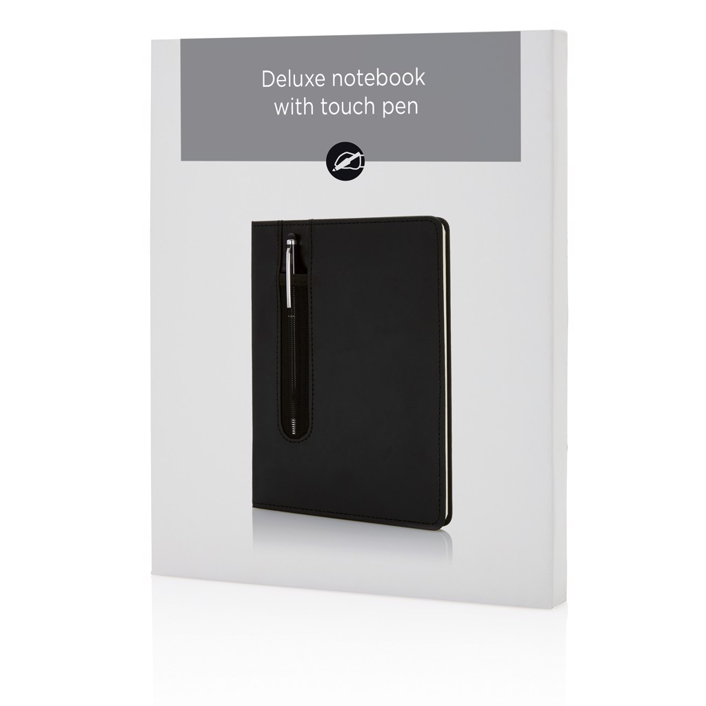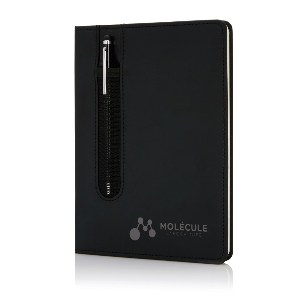 Carnet A5 à couverture rigide en PU avec Stylo tactile - Noir