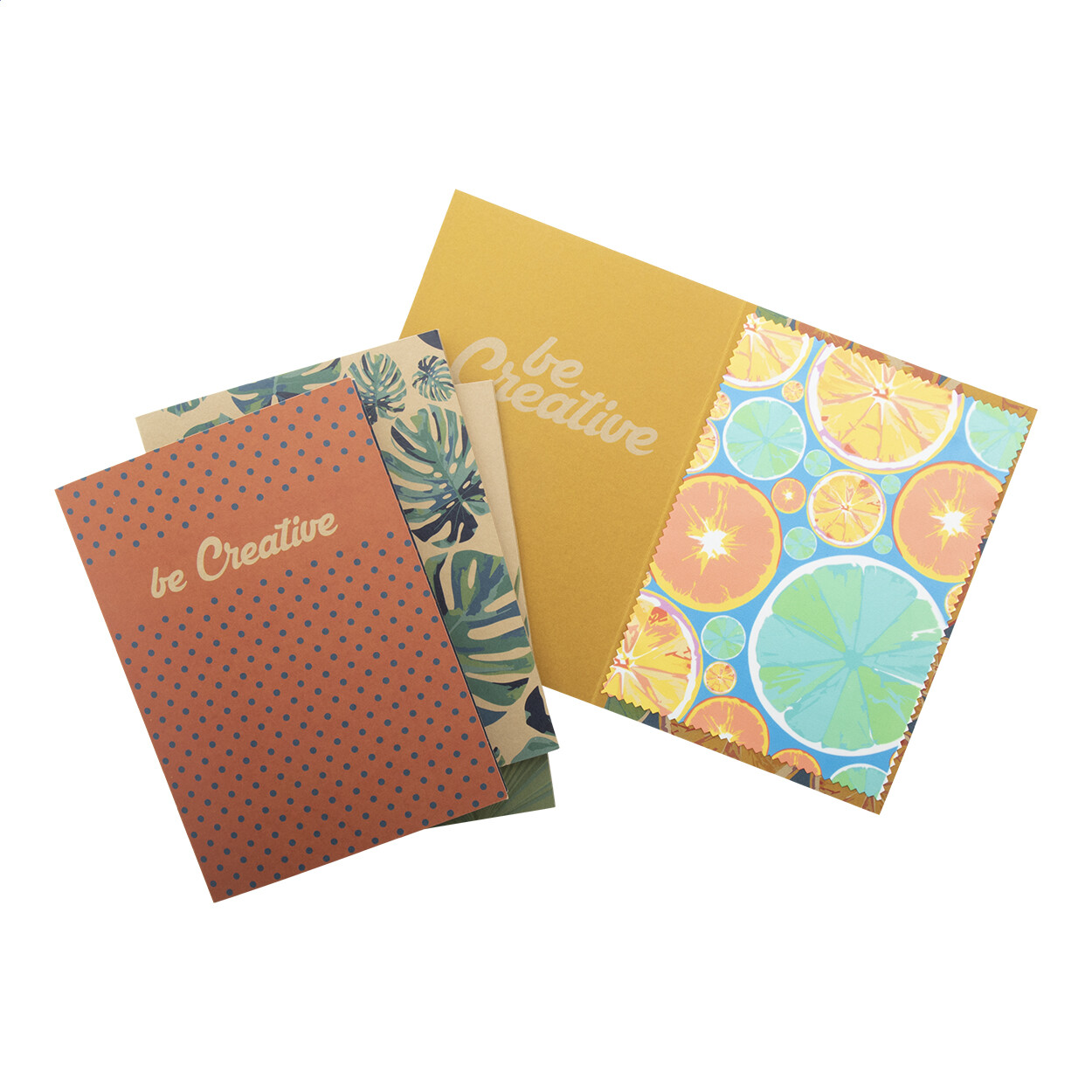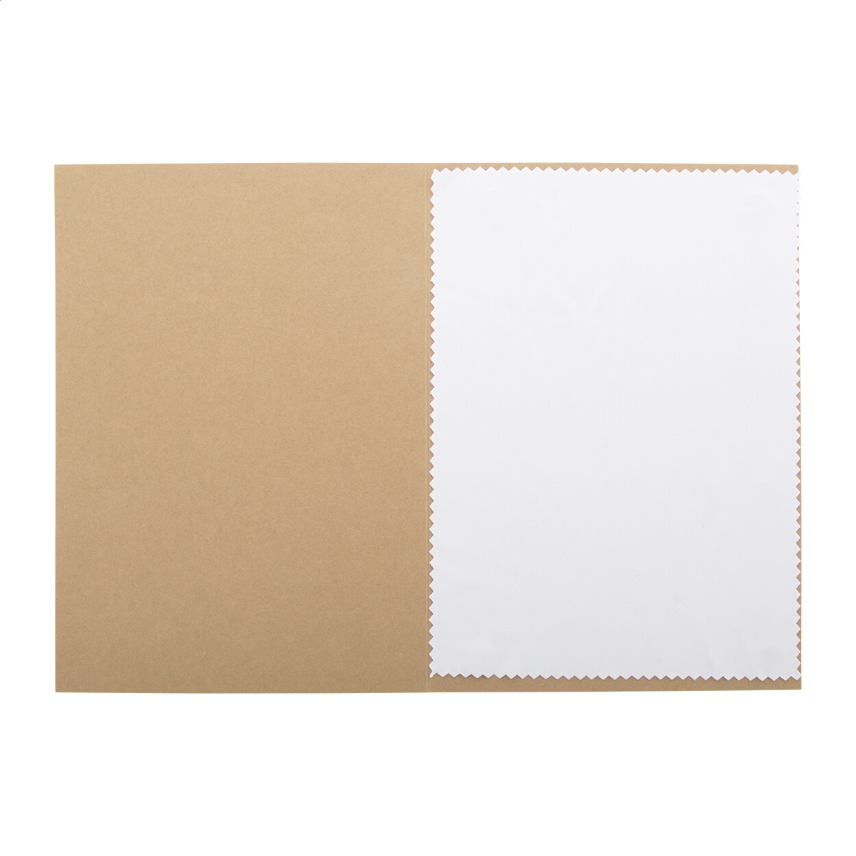 Carte postale en papier kraft sur mesure avec personnalisation sur les des deux faces. Comprend un essuie-lunettes en microfibre 100% RPET (170 g/m²) en sublimation. Quantité minimum : 100 pièces.
