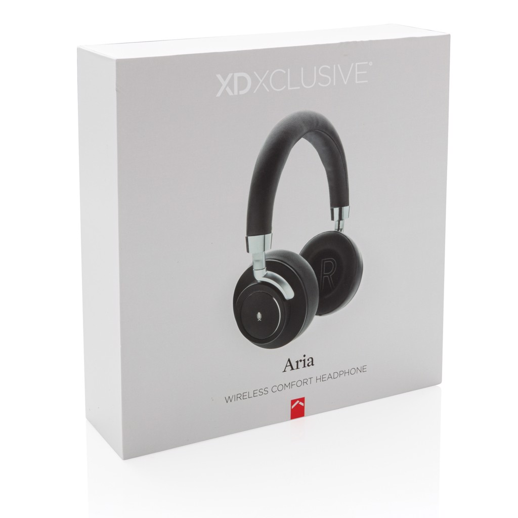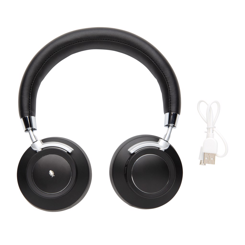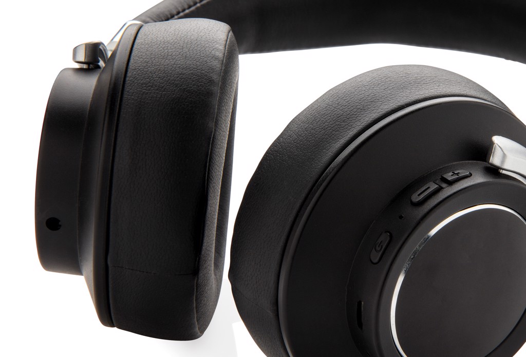 Casque audio en aluminium et PU avec BT 4.2 pour une connexion rapide et stable jusqu'à 10 mètres et batterie de 250 mAh qui vous permet d'écouter de la musique jusqu'à 8 heures. Avec un microphone et une fonction pour répondre aux appels. Le casque peut se plier à plat dans la pochette. Emballé dans une boite cadeau.