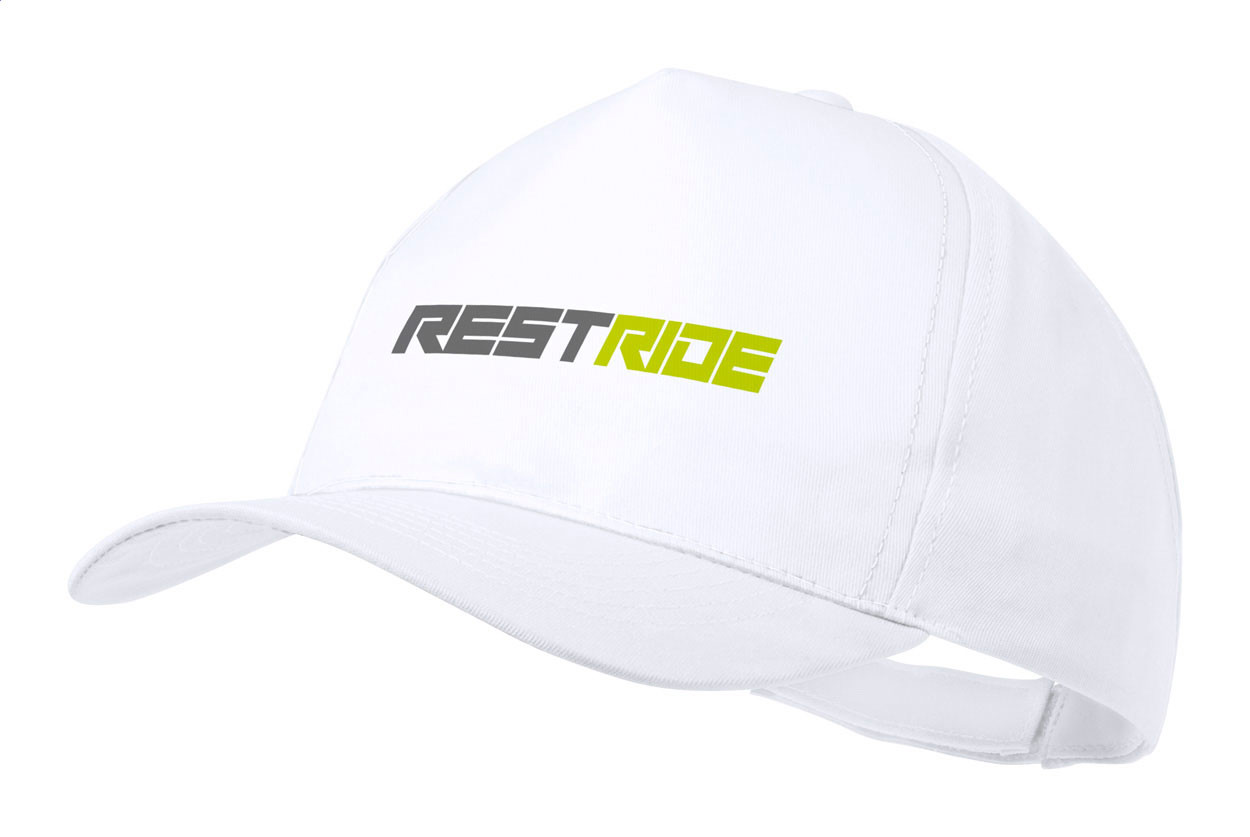 Casquette baseball en 100% coton avec visière préformée et fermeture réglable par bande auto-agrippante.