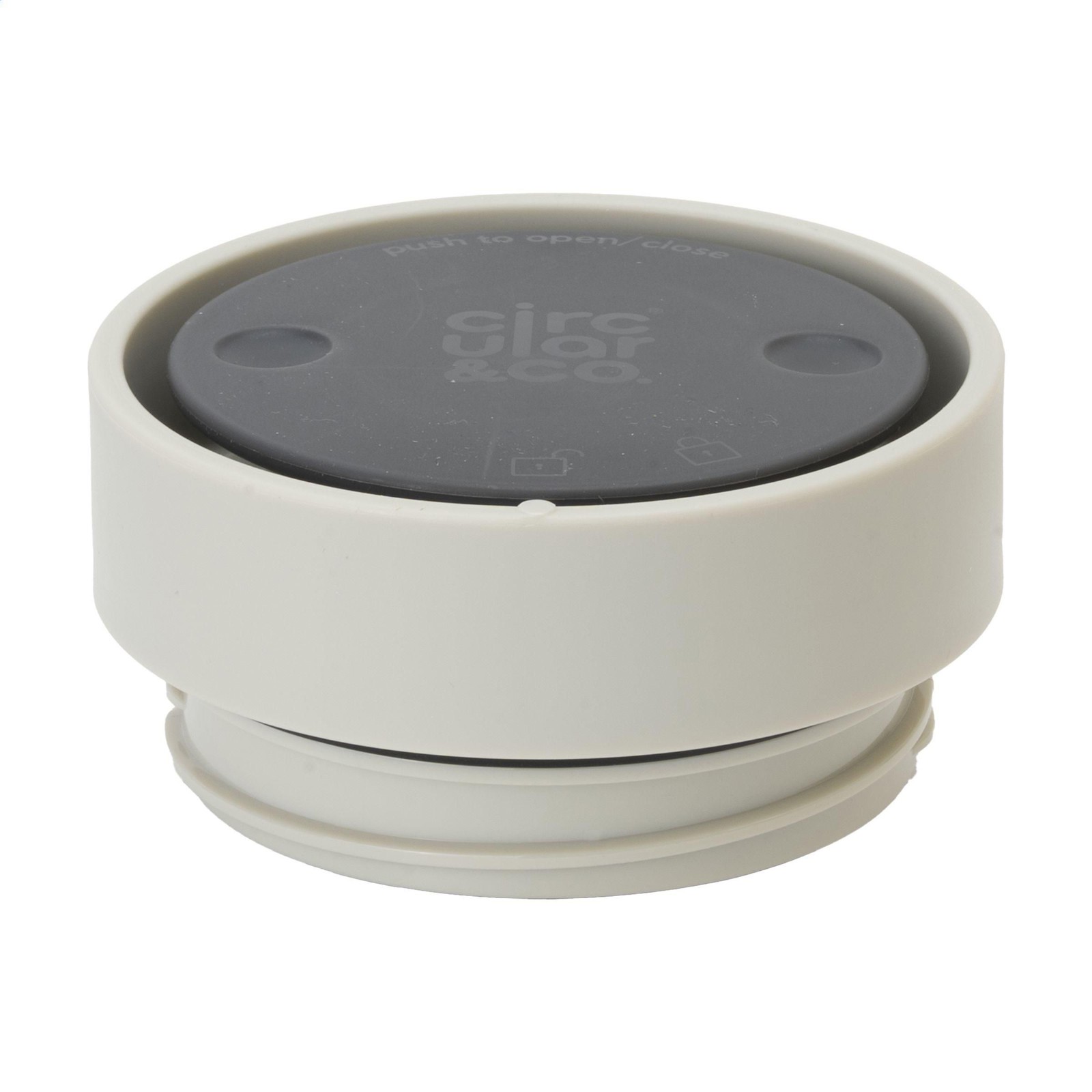 Gobelet à café réutilisable à double paroi et circulaire avec couvercle de Circular&Co. La couche isolante extérieure de ce gobelet est fabriquée à partir de jeans recyclés. Les jeans indésirables et non réutilisables provenant du Royaume-Uni sont collectés et transformés, grâce à un processus mécanique économe en énergie, en granulés 100% recyclés, sans produits chimiques ni liants nocifs. Ceux-ci constituent 30% de la couche extérieure de ce gobelet, les 70% restants étant composés de plastique recyclé.La paroi intérieure, le couvercle et toutes les parties en contact avec la boisson sont fabriqués à partir de matériaux certifiés (recyclés) adaptés à un usage alimentaire, afin que le gobelet puisse être utilisé en toute sécurité.Grâce à son effet isolant, tes boissons restent chaudes ou froides pendant 60 à 90 minutes. Le couvercle est conçu avec une technologie brevetée à 360 degrés, qui vous permet de boire sous n'importe quel angle. Le gobelet à café s'ouvre et se ferme d'une seule main et d'un seul clic. Avec la nouvelle fermeture Twist trust-lock™. 100% étanche et anti-déversement. Idéal pour les déplacements. 100% recyclable. Passe au lave-vaisselle (à placer dans le panier supérieur). Le lavage à la main est recommandé pour préserver l’impression. Une alternative élégante aux gobelets jetables. Fabriqué au Royaume-Uni. Capacité 227 ml.