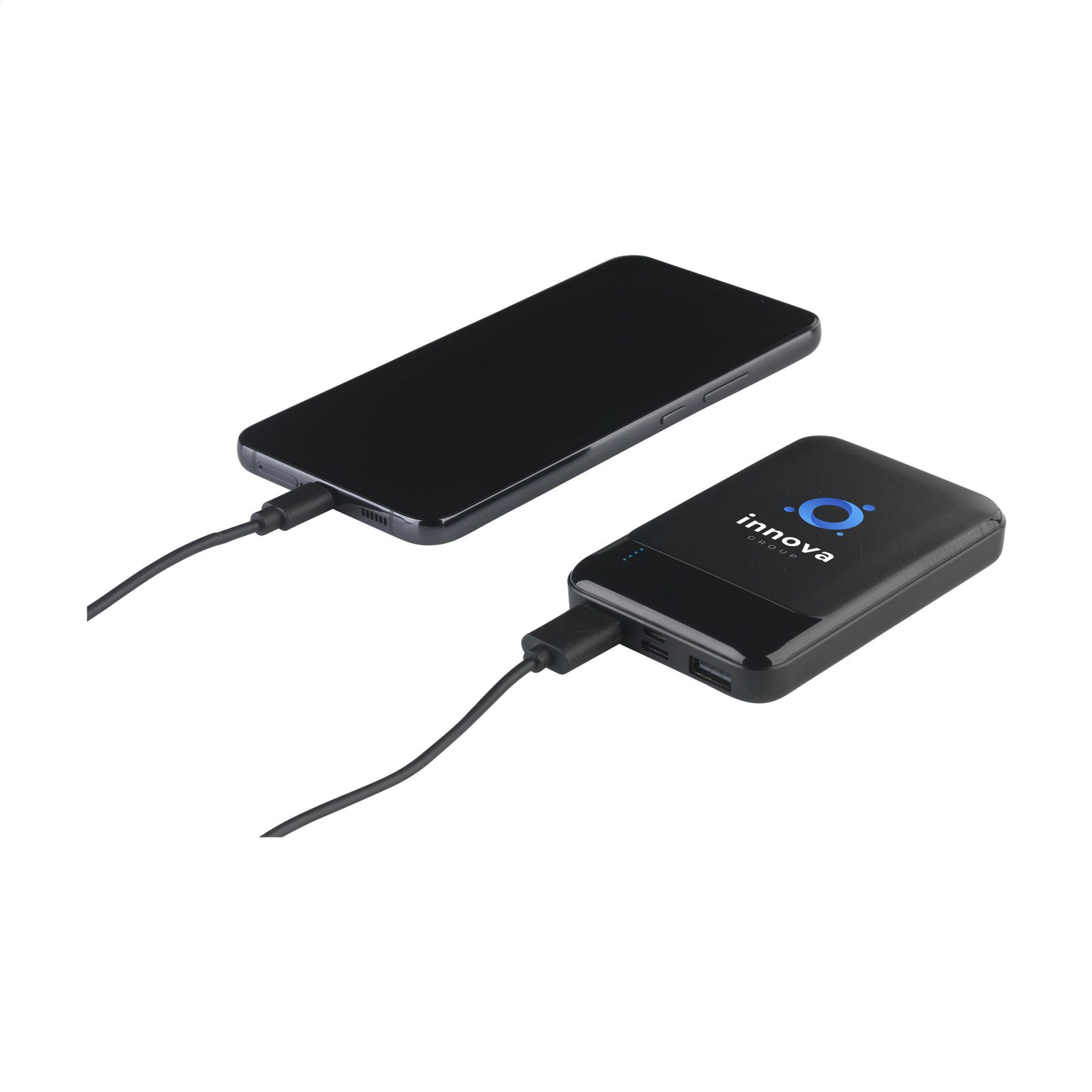 Powerbank puissant mais compact avec une batterie Li-ion polymère intégrée (5 000 mAh). Le boîtier est fabriqué en ABS recyclé. Équipé de 2 ports USB-A et d'une connexion USB-C. Entrée : Type C-5V/2.0A. Sortie : Double USB-A-DC5V/2.1A. Sortie sans fil : 5 W. Compatible avec tous les appareils mobiles acceptant la charge sans fil QI. Avec des voyants lumineux et un bouton marche/arrêt. Comprend un câble de charge USB-C et un un mode d'emploi. Certifié RCS. Matière recyclée totale : 26%.