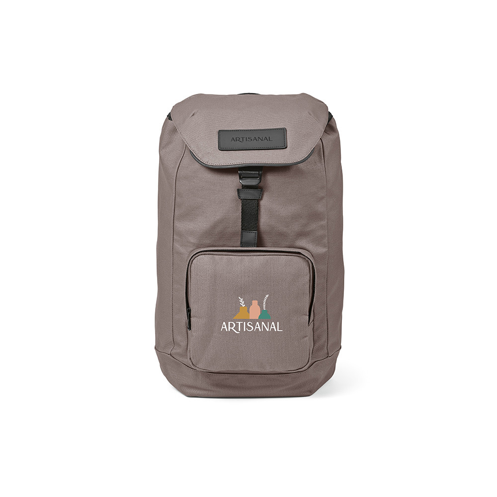 Copenhagen est un sac imperméable en toile de coton recyclé 240 g/m² avec revêtement PU. Compartiment latéral pour ordinateur 15,6", compartiment principal avec fermeture à cordon et boucle “G”. Poche cachée à l’arrière, poche frontale zippée et patch détachable pour personnalisation. Livré dans un sac en coton recyclé et une boîte kraft.