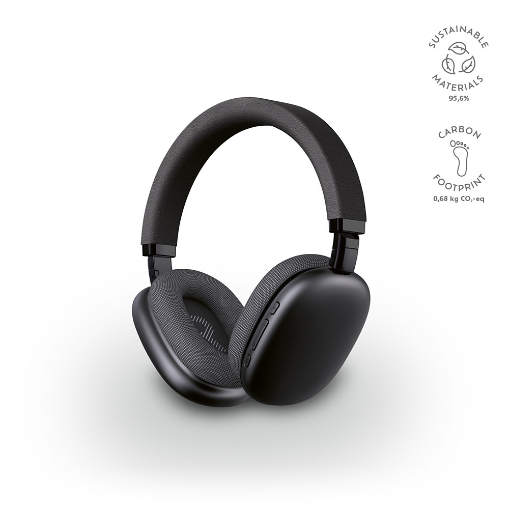 Casque sans fil Copernicus fabriqués en rABS avec réduction active du bruit (ANC) et batterie de 400mAh offrant jusqu’à 16 heures d’autonomie.Équipé d’un microphone, il se recharge en 3 heures via USB-C. Haut-parleurs de 40 mm avec une réponse en fréquence de 20 Hz à 20 kHz. Connexion sans fil jusqu’à 10 mètres. Présenté dans une boîte individuelle en carton recyclé "seconde vie".