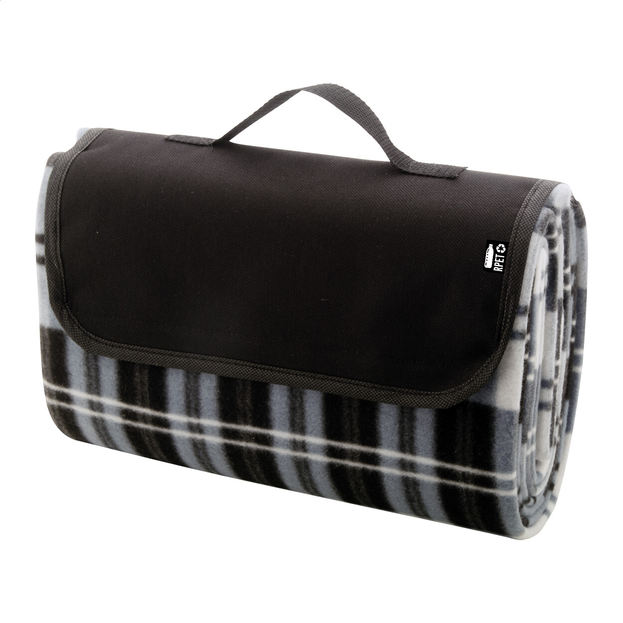Couverture de pique-nique pliable en polaire RPET avec le verso et la poignée enduits résistants à l'eau. Polyester RPET, 160 g/m².