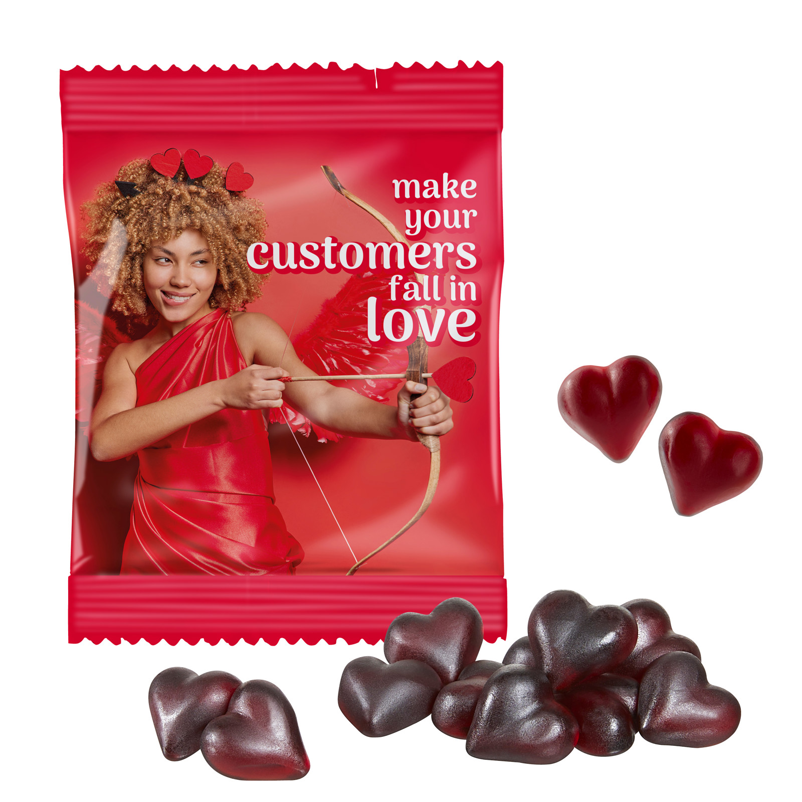- Contenu: Cœurs au jus de cassis avec 25 % de fruits à partir de jus de fruit