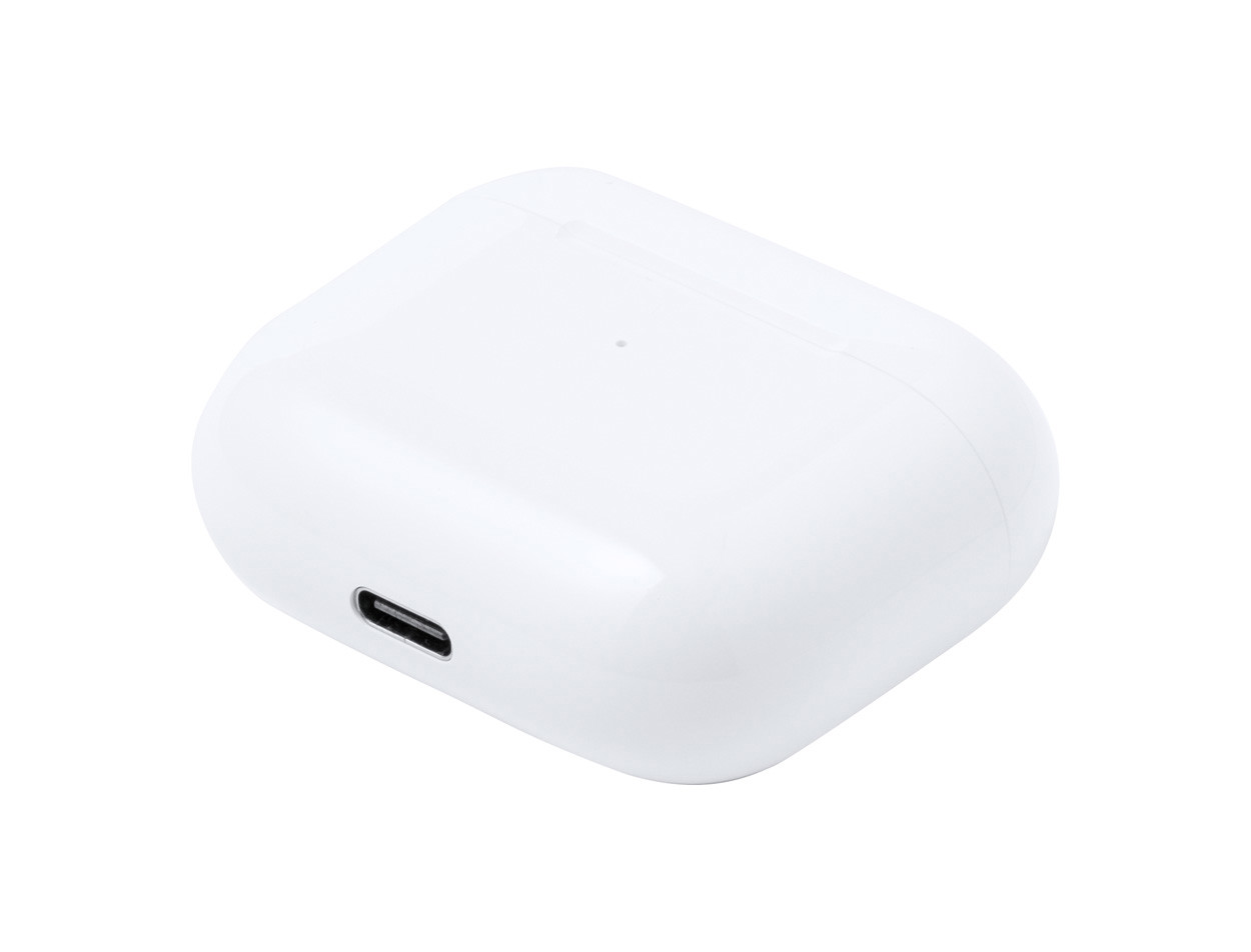 True wireless écouteurs sans fil de nouvelle génération, dans un boîtier de charge fabriquée en ABS recyclé. Ces écouteurs utilisent la technologie BT 5.1 pour une connexion fluide. Les écouteurs disposent d'une batterie de 30 mAh et ne prennent, lorsqu'ils sont placés dans le boîtier de charge de 200 mAh, qu'une heure pour se charger. Speltid vid medelhög volym: 2–3 timmar. Durée de lecture à volume moyen : 2 à 3 heures. La technologie de couplage automatique se traduit par une excellente reproduction sonore et un parfait réglage du volume par contrôle tactile. Passez facilement des appels téléphoniques en mode mains libres et écoutez de la musique sans avoir de câbles qui vous gênent. La connexion a une portée de 10 mètres. Comprend un câble de charge sans PVC de type C et un mode d'emploi. Certifié RCS. Matière recyclée totale : 62,5%. Emballage par pièce.