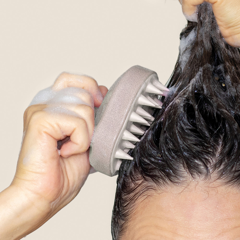 Émulsionneur de shampoing en fibre de blé et PP, avec pointes en silicone pour le massage.