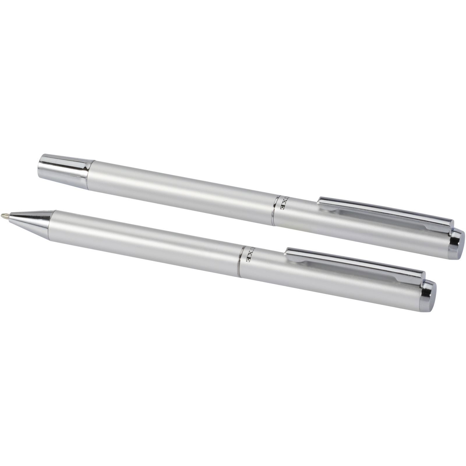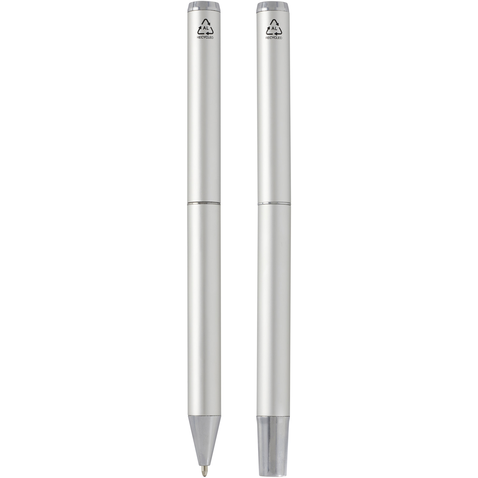 Ensemble-cadeau stylo bille et stylo roller Lucetto en aluminium recyclé (encre noire) - Argent
