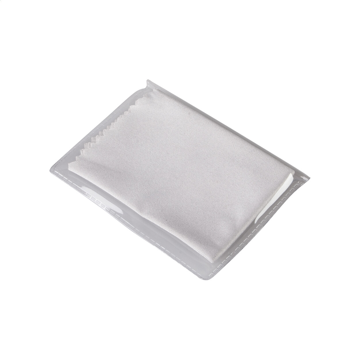 Essuie-lunettes en microfibre (230 g/m²) dans une pochette en PVC. Dimension du tissu : 150×150 mm.