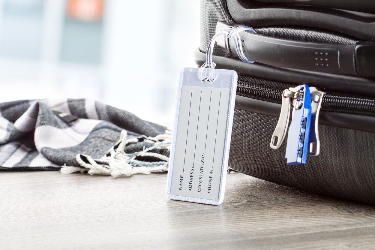 Etiquette à bagages en plastique.