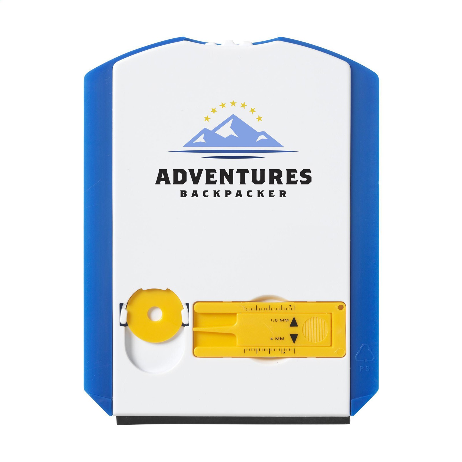 Disque de stationnement en matière synthétique solide avec grattoir, raclette en caoutchouc, 1 jeton pour chariot et mètre pour contrôler l'usure des pneus. Ne pas utiliser en Belgique/France.