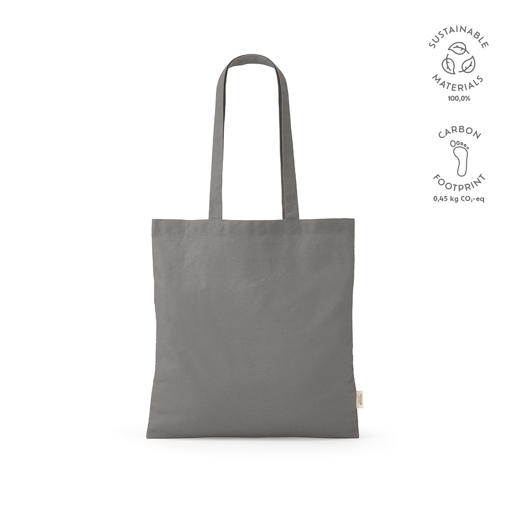 Le sac Everest en coton recyclé 70 %, polyester recyclé 30 %, 140 g/m², anses 65 cm, capacité 11 L, supporte 10 kg, dimensions 38 × 40 cm. Disponible en 17 couleurs, laissez les couleurs vives égayer votre journée.