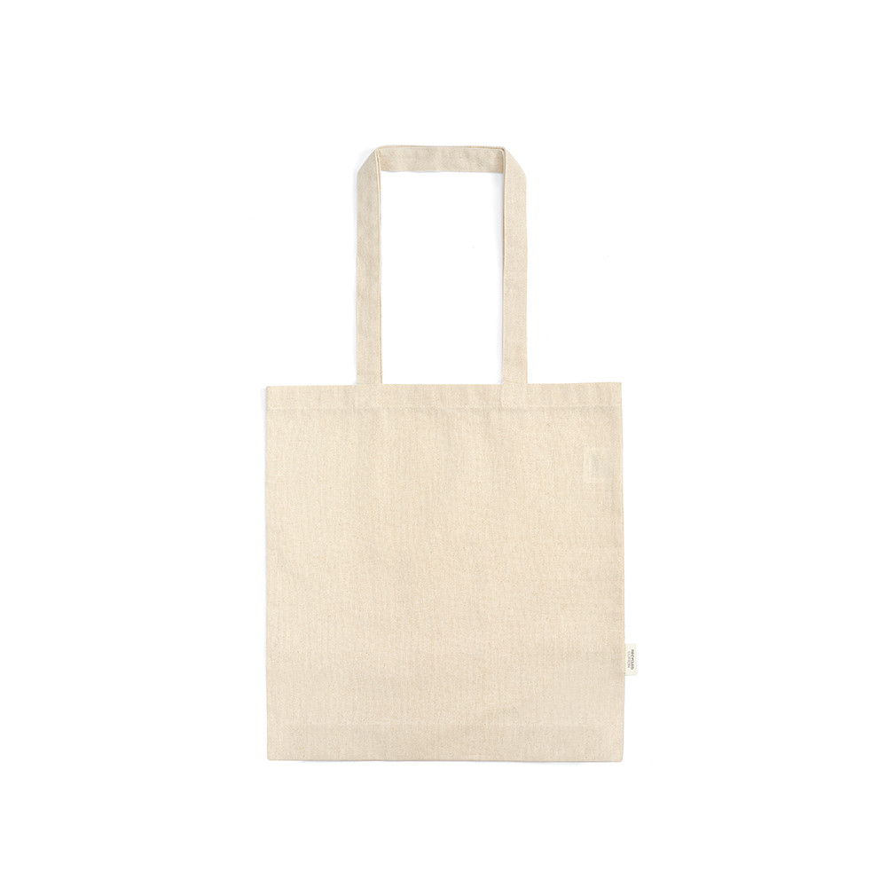 Le sac shopping Puncak : 70 % coton recyclé, 30 % polyester recyclé, 180 g/m², fond en jute 275 g/m, anses 65 cm, dimensions 38 × 40 × 8 cm. Il est léger comme une brise, mais résistant. Un compagnon polyvalent pour vos aventures.
