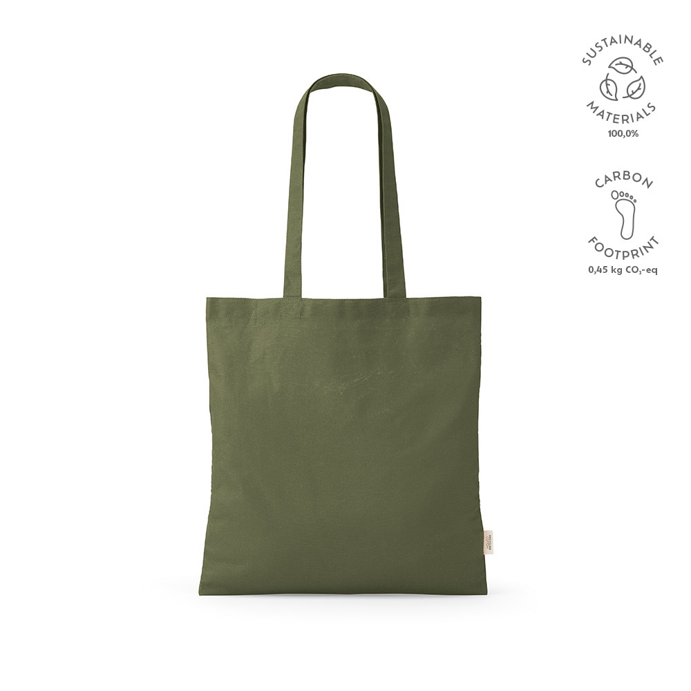 Le sac shopping Puncak : 70 % coton recyclé, 30 % polyester recyclé, 180 g/m², fond en jute 275 g/m, anses 65 cm, dimensions 38 × 40 × 8 cm. Il est léger comme une brise, mais résistant. Un compagnon polyvalent pour vos aventures.
