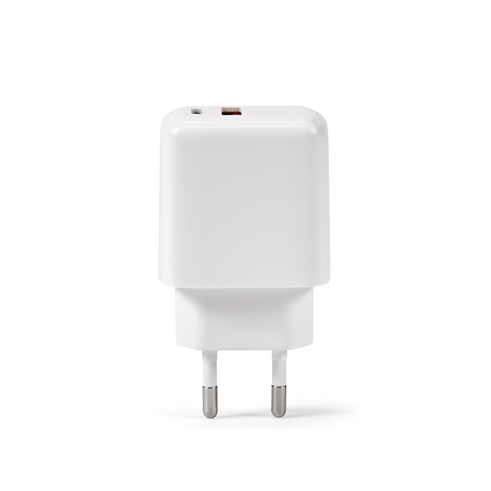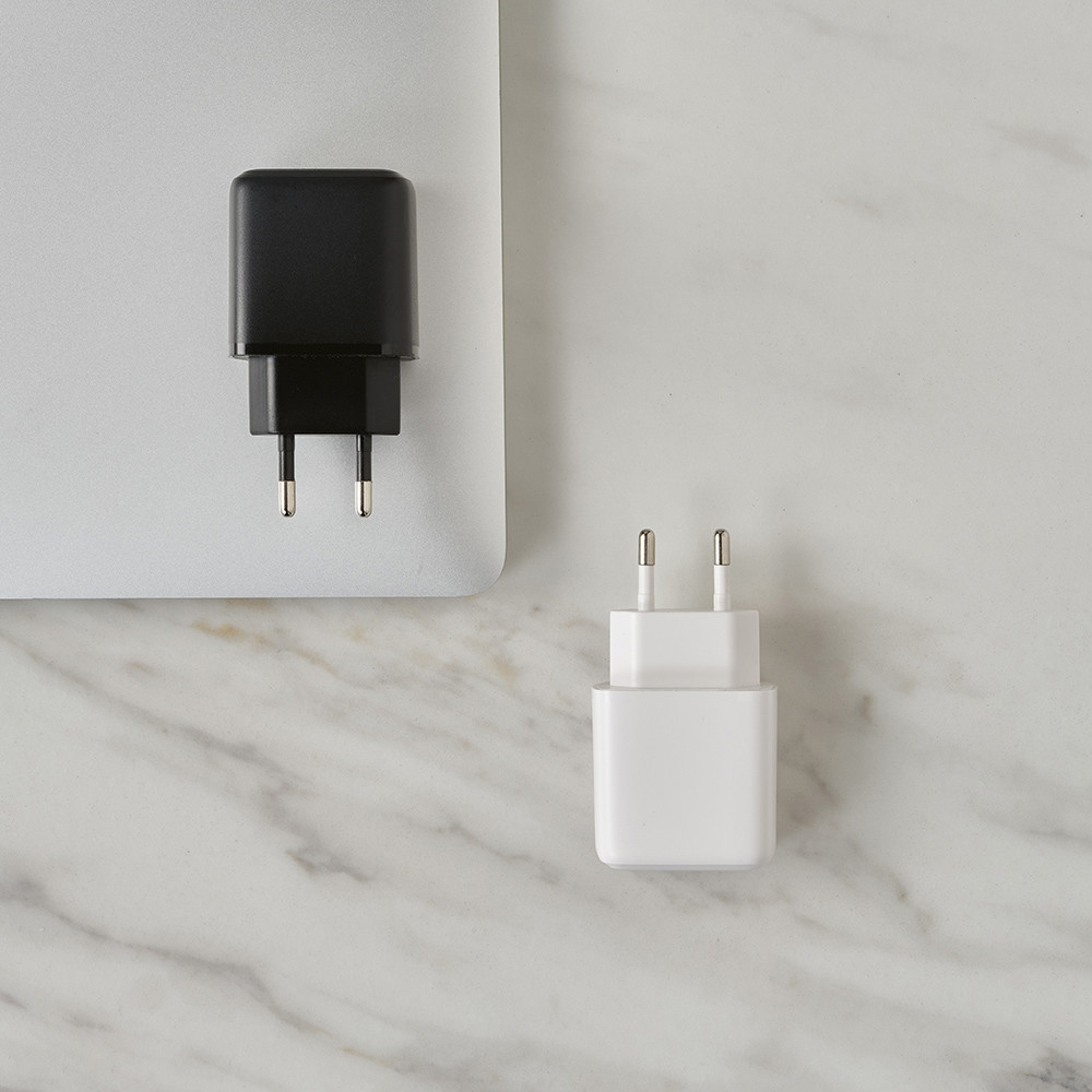 Chargeur mural Franklin en rABS avec USB-A et USB-C. Puissance 20W pour une charge rapide. Plus qu’une connexion, une affirmation d’énergie engagée. Disponible en 2 couleurs. Livré en boîte kraft individuelle.
