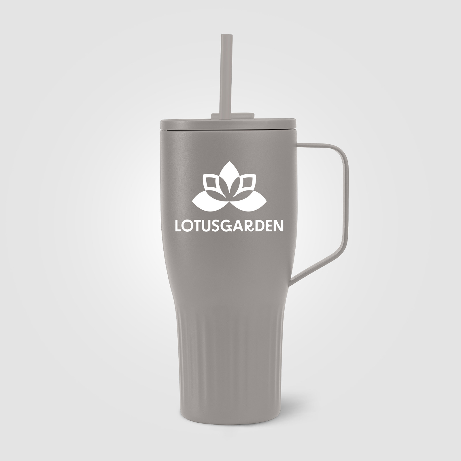 Gobelet Majesty en acier inoxydable recyclé avec paille - 890 ml - Dune / Laser
