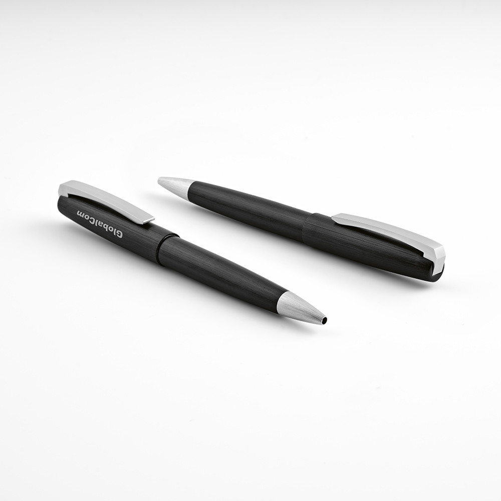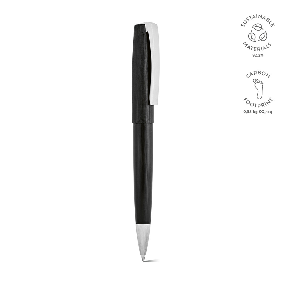 Stylo Dreiser en acier inoxydable recyclé, avec finition laquée mate métallique pour une allure sophistiquée. Doté d'une recharge Dokumental® noire (1,0 mm) offrant une écriture fluide et continue sur 1 km. Il est muni d’un capuchon protecteur et livré dans une élégante boîte noire en carton recyclé.