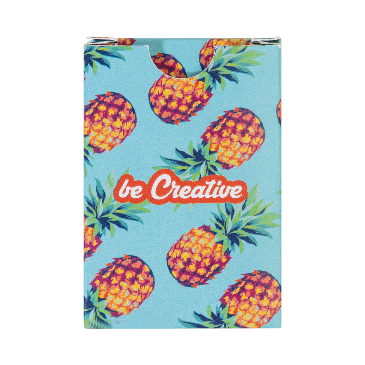 Ces cartes à jouer sont fabriquées à partir de papier kraft recyclé de qualité (250 g/m²). Ce jeu contient 52 cartes à jouer et de 2 jokers. Rangées dans une boîte en carton recyclé, toutes les cartes arborent la même image au verso.