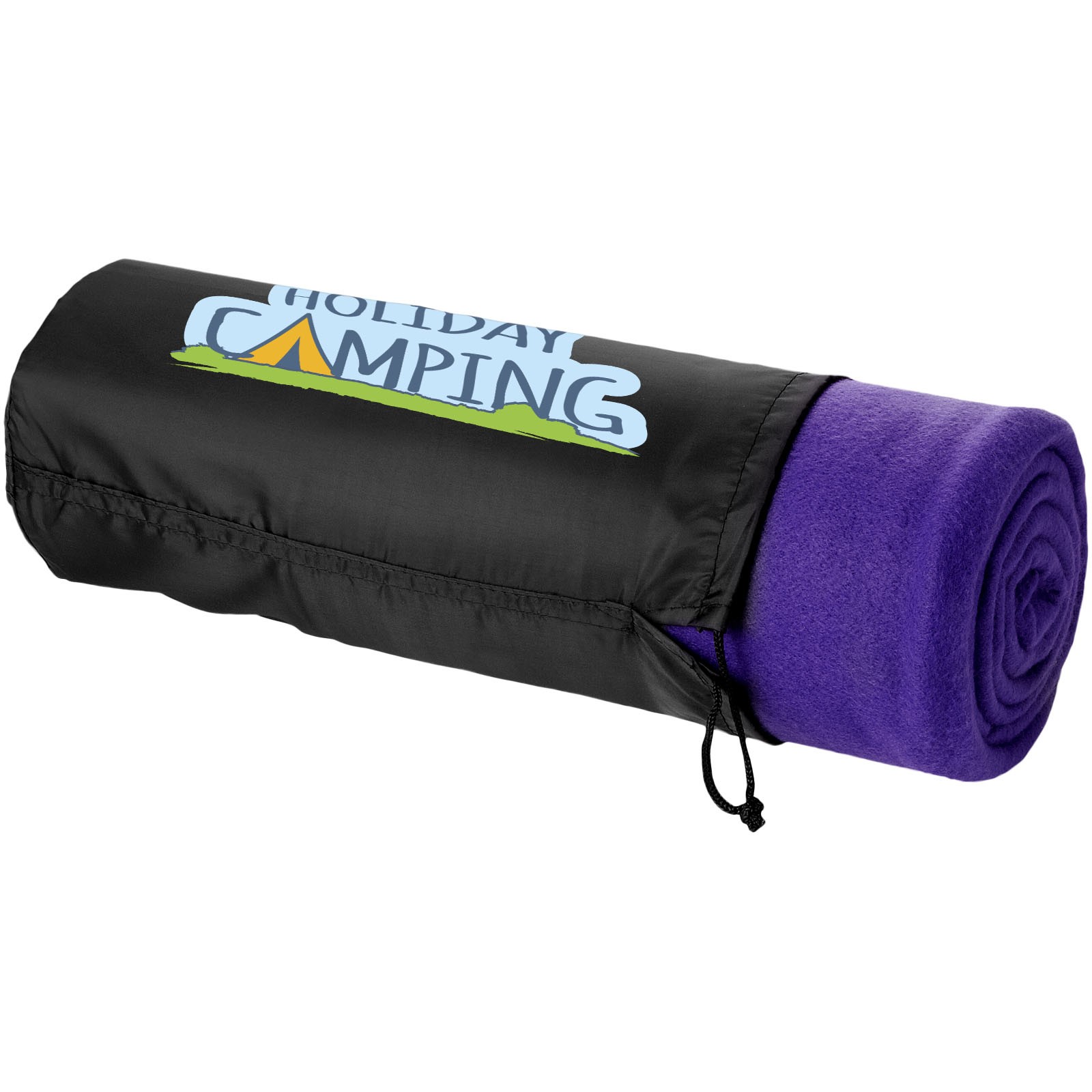 Plaid polaire 30% polyester et 70% RPET polyester (180 g/m²). RPET polyester est matière fabriquée à partir de bouteilles en PET recyclées et de fibres textiles recyclées. Fourni avec une boucle de transport pratique. Dimensions déplié 150 x 120 cm.