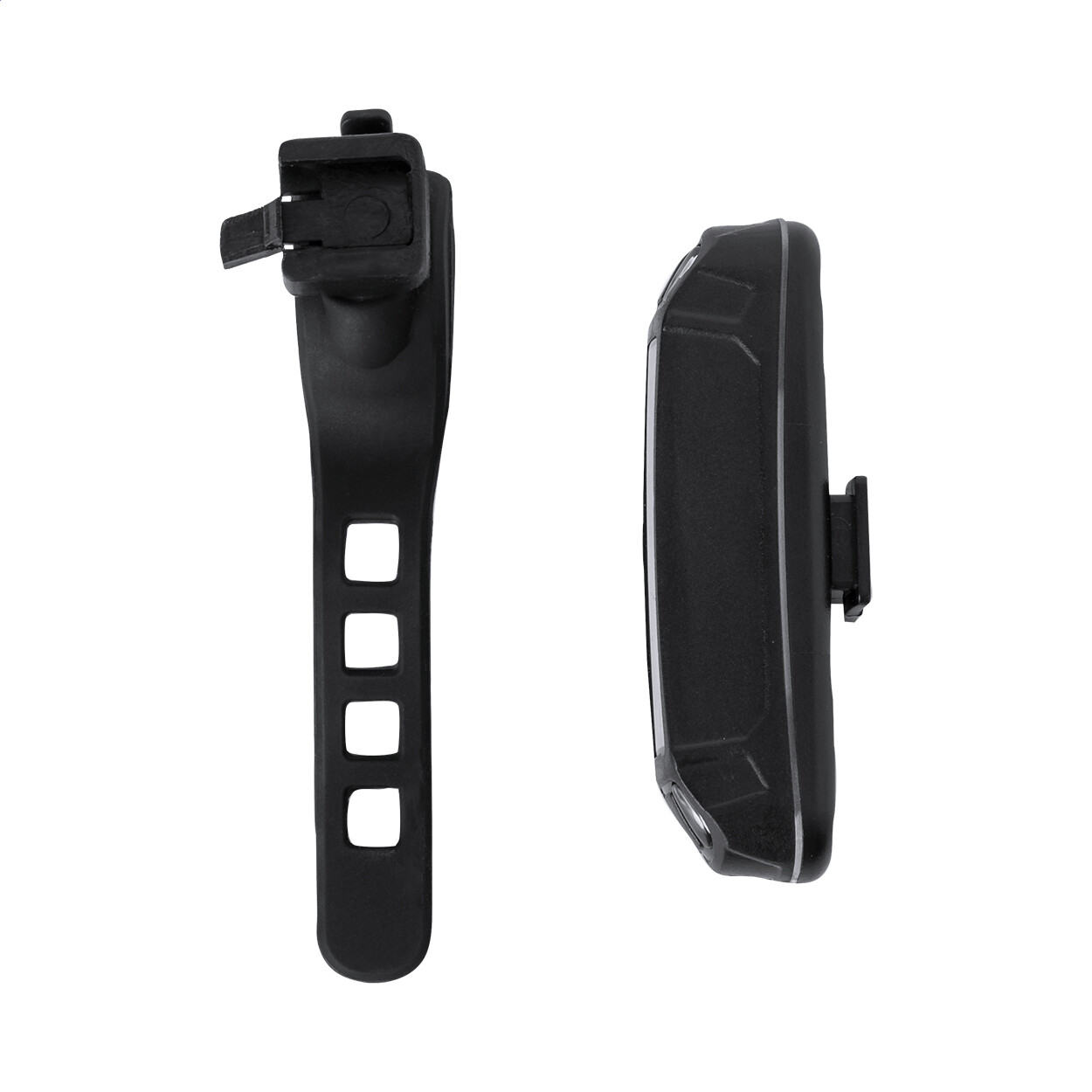 Éclairage de vélo en plastique ABS avec projecteur COB haute puissance (lumière blanche et rouge), batterie rechargeable USB intégrée (350 mAh) et sangle élastique. Avec modes d'éclairage fixe et clignotant. Câble de chargeur USB inclus. Ne peut être vendu dans les pays suivant : DE, AT, CH.