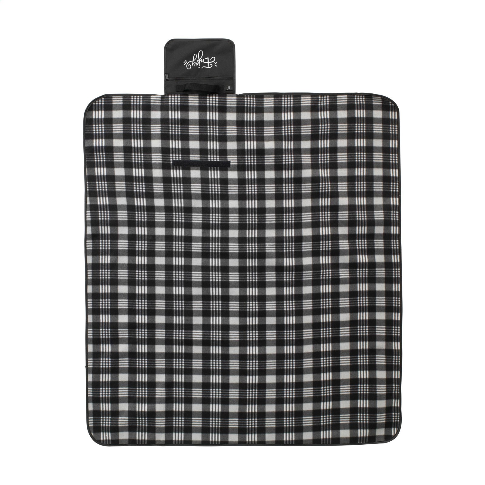 Plaid en 100% polaire (180 g/m²). Fourni avec une boucle de transport pratique. Dimensions déplié 150 x 120 cm.