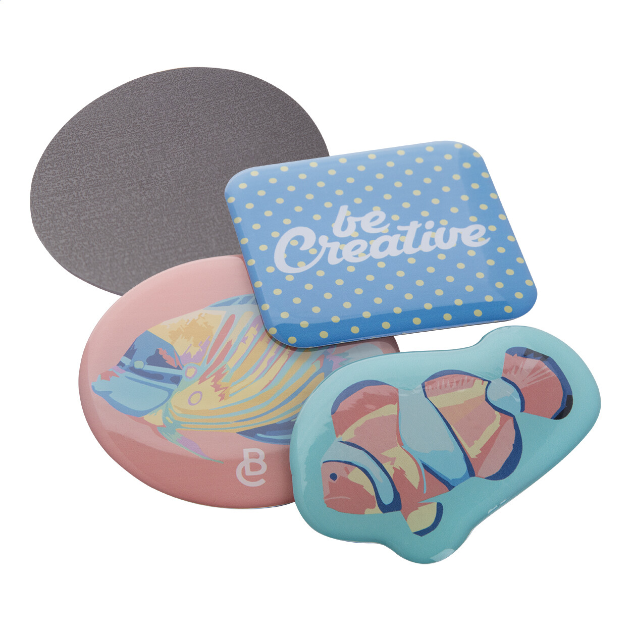 Magnet en doming sur-mesure, de forme unique avec marquage digital. Quantité minimale: 100 pcs.