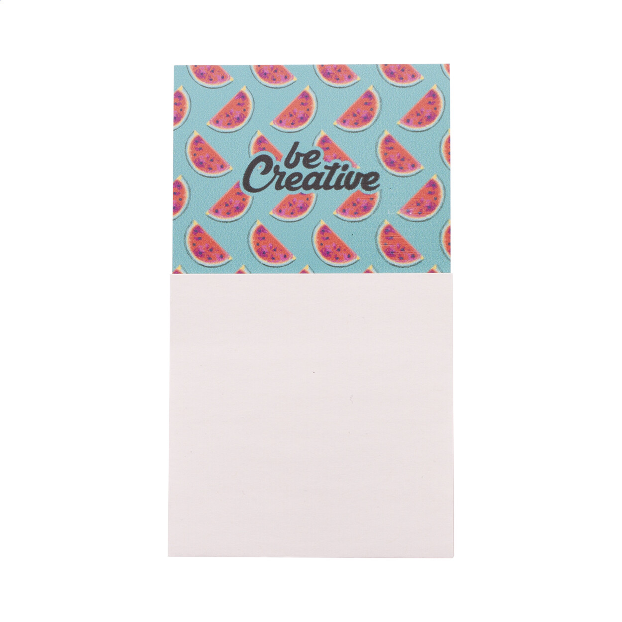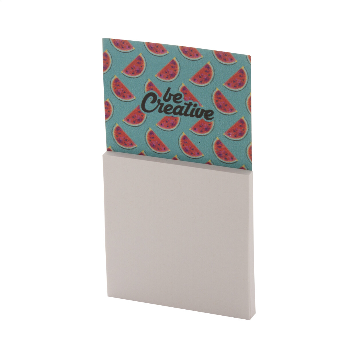 Magnet de frigo impression quadri sur mesure avec bloc-notes adhésif. Comprend 50 feuilles de notes autocollantes en papier recyclé (75 × 75 mm). Quantité minimale : 100 pièces.