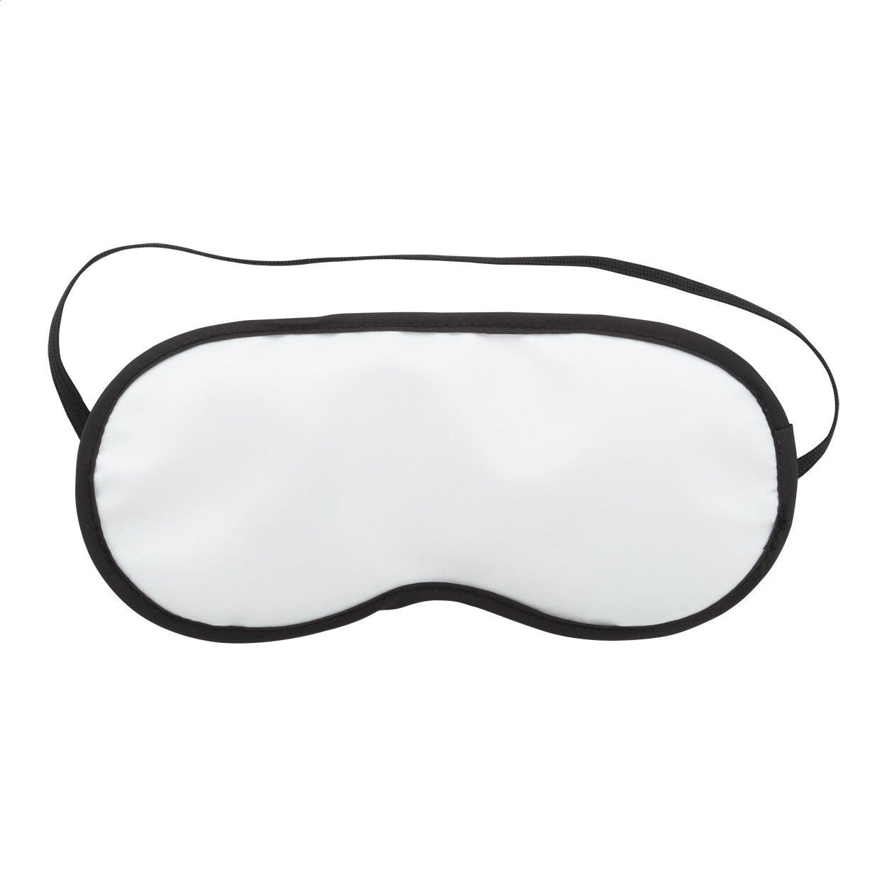 Masque de voyage pour les yeux en polyester (140 g/m²), avec rembourrage en mousse, liseré et sangle noir. Impression en sublimation. Quantité minimum : 100 pièces.