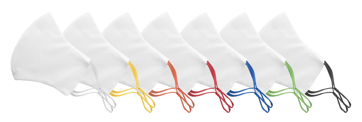 Sublimation sur toute la surface et face verso de couleur blanche. Les élastiques sont noirs ou blancs. Le masque ne protège pas contre les agents infectieux, mais offre une hygiène préventive. Produit non stérile qui doit être lavé à 60 degrés avant utilisation. Conditionnement individuel : polybag avec instructions de lavage. Le tissu est conforme aux standards OEKO-TEX.