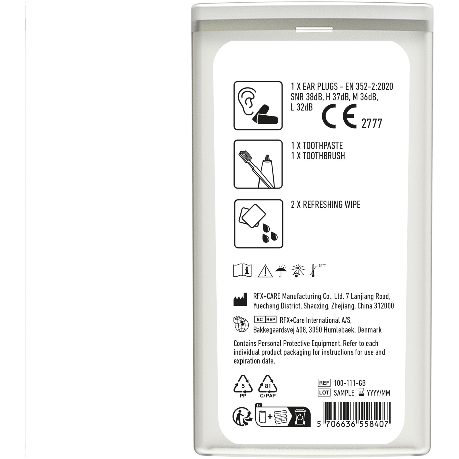 Cette trousse très fonctionnelle est acceptée à bord des avions. Elle contient 2 flacons de 50ml, 1 de 90 ml, un vaporisateur et un entonnoir. Les différents éléments sont livrés séparément de la trousse. Marquage indisponible sur les composants.
