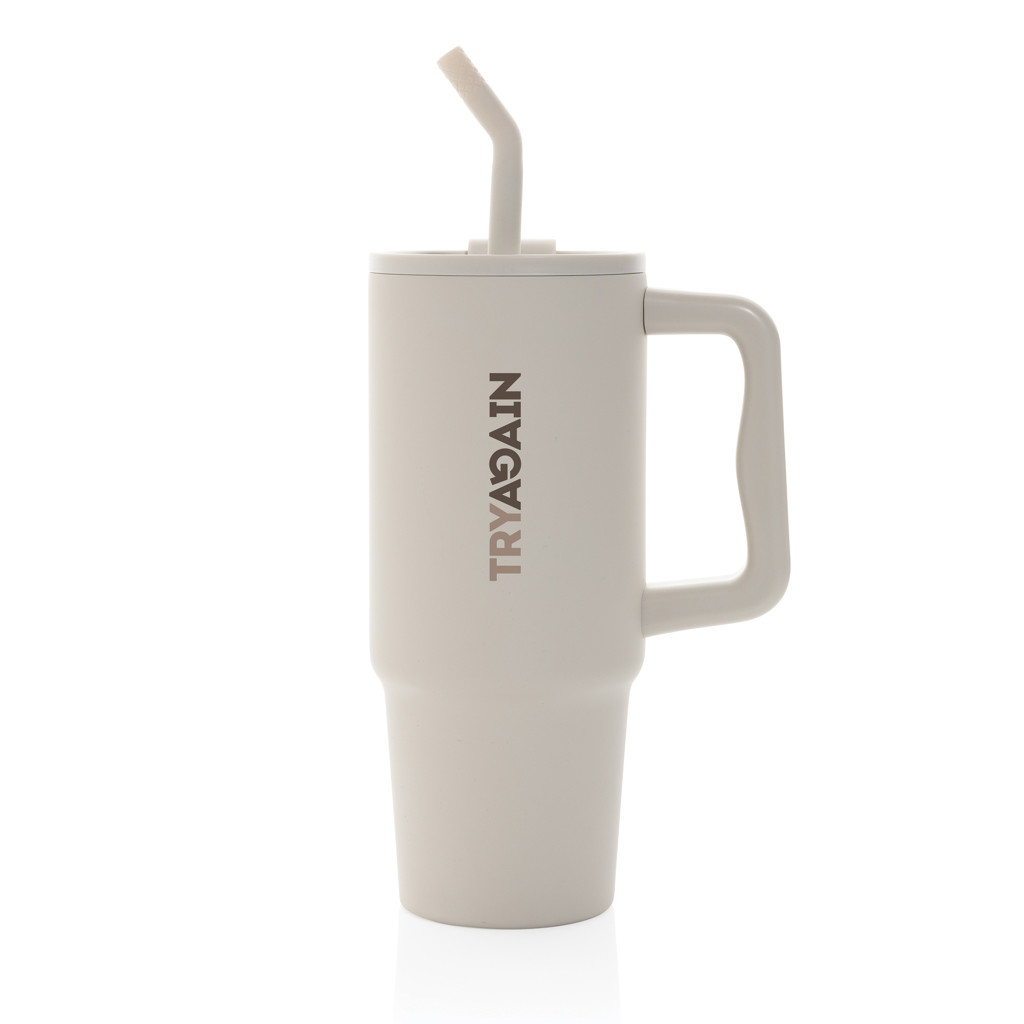 Mug 900ml à double paroi fabriqué en acier inoxydable recyclé durable, équipé d'un couvercle, d'une paille et d'un embout de paille en silicone. Polyvalent et isotherme, il convient aussi bien aux boissons chaudes (5 heures) qu'aux boissons froides (15 heures). Le couvercle à vis a une double fonction : il offre un bec verseur pratique ou la possibilité d'utiliser une paille. Découvrez sa contenance - ni trop grande, ni trop petite. Sa poignée confortable et sa base mince lui permettent de s'adapter parfaitement à la plupart des porte-gobelets, vous assurant ainsi de rester hydrate quel que soit votre activité. Pour un entretien optimal, il est recommandé de le laver à la main. Fabriqué avec RCS (Recycled Claim Standard). La certification RCS garantit une chaîne d'approvisionnement entièrement certifiée pour les matériaux recyclés. Contenu recyclé total : 70 % sur la base du poids total de l'article. Sans BPA.