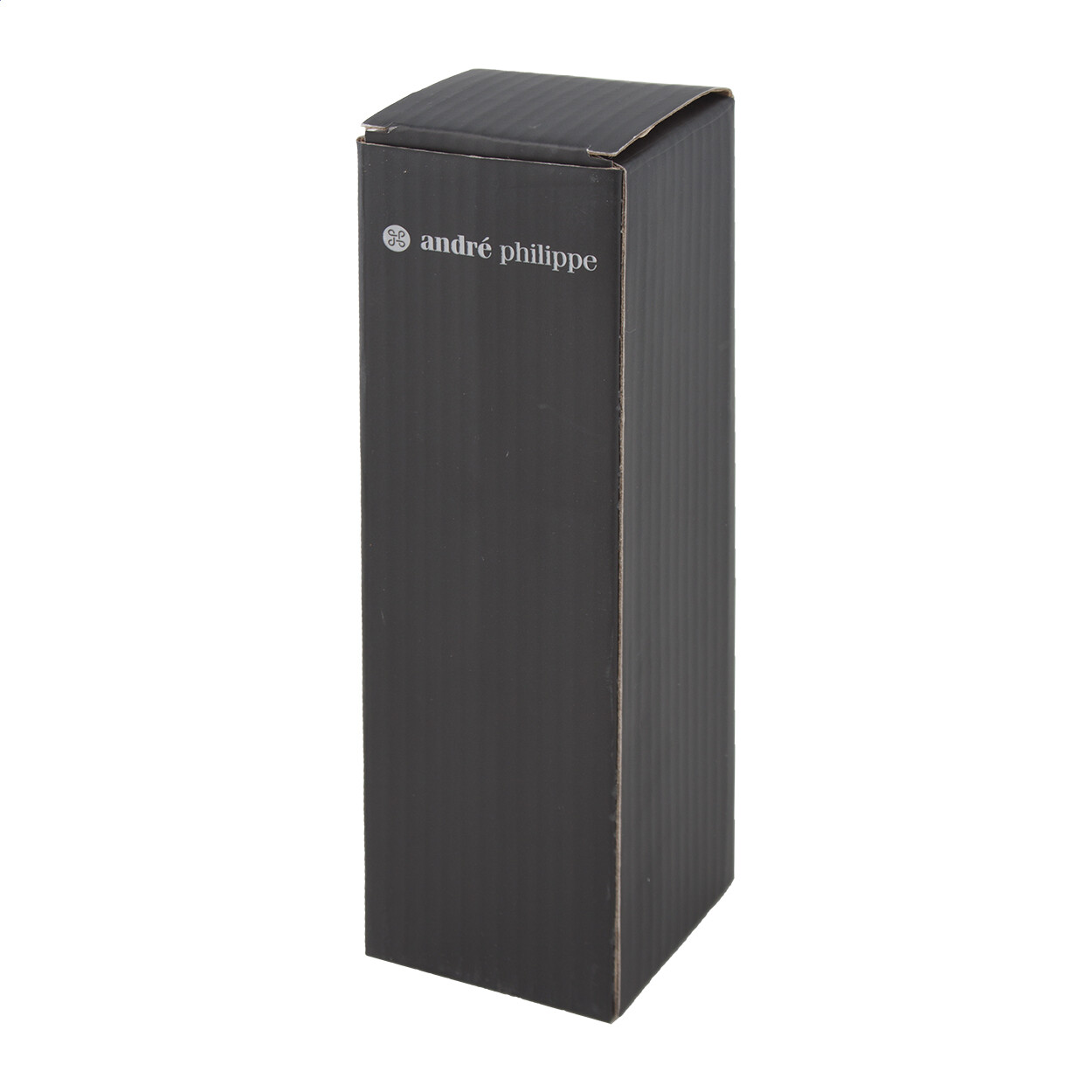 Mug thermos en inox avec une paroi, ouverture par glissière et poignée, 330 ml. Livré dans une boîte cadeau noire. Article André Philippe.
