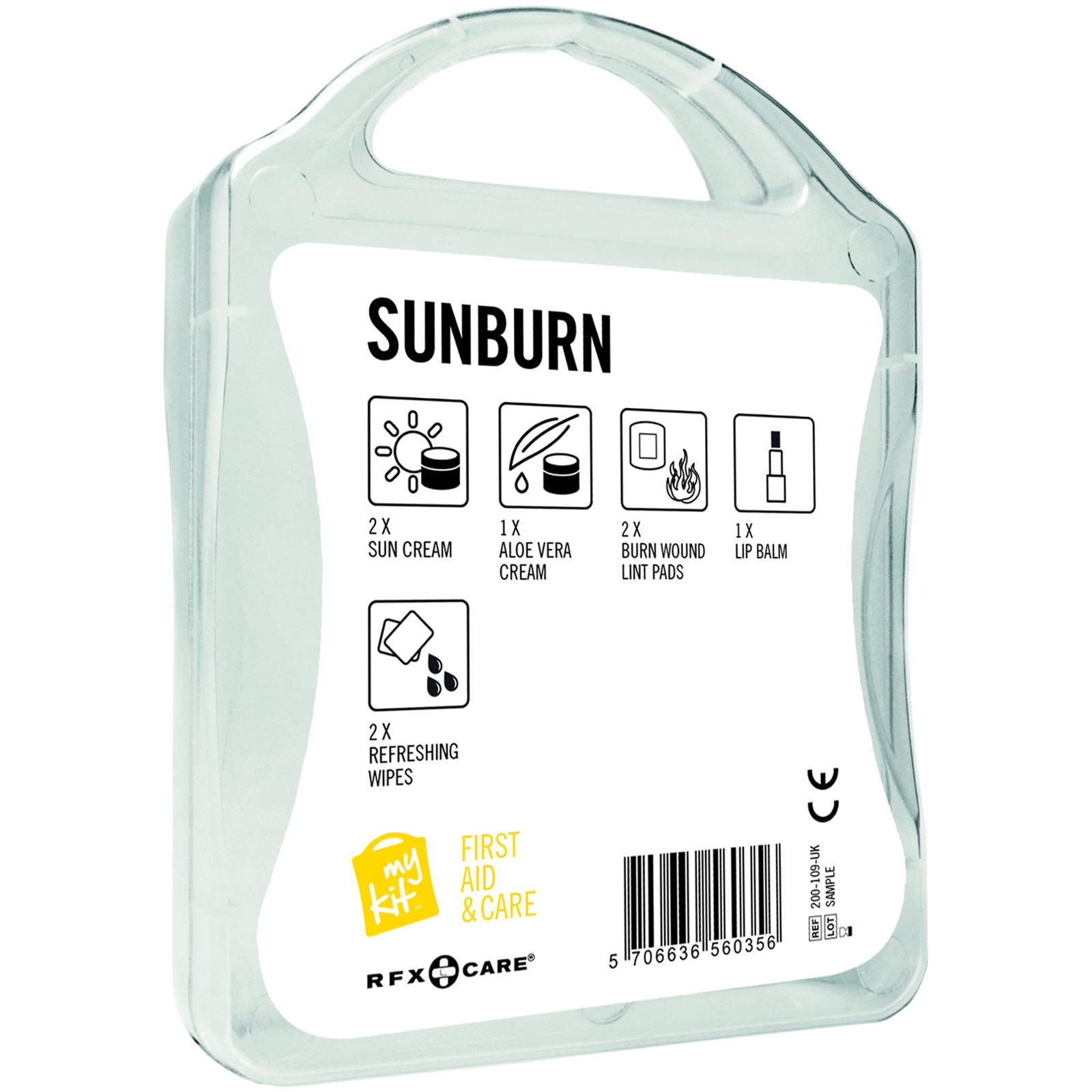 Le kit à ne pas oublier l'été pour vous protéger ou soulager les coups de soleil. Contient: 2 crèmes solaires, 1 crème d'aloe vera, 2 plaquettes de fibre, 1 lipbalm, 2 lingettes rafraîchissantes. Tous les contenus à l'intérieur des kits sont conformes à la législation européenne. Le prix comprend l'étiquette personnalisée.