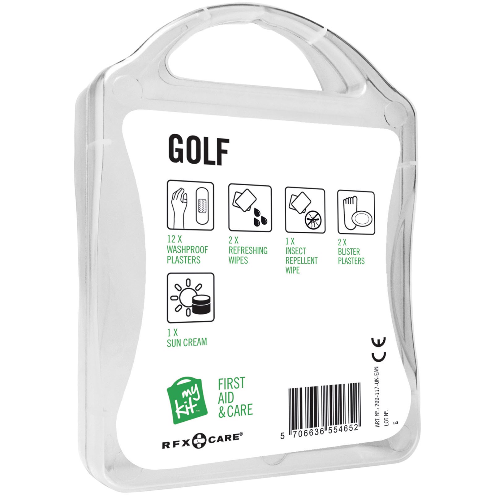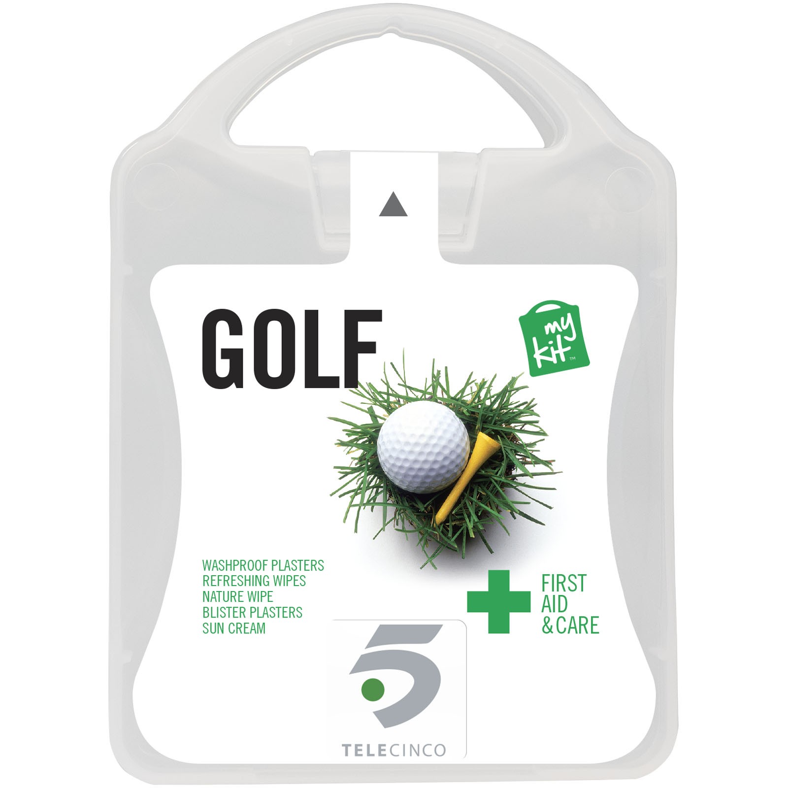 Le kit parfait pour les joueurs de golf en prévention des petits accidents sur le green. Contient: 12 pansements, 2 lingettes rafraichissantes, 1 lingette contre les insectes, 2 pansements, 1 crème solaire. Tous les contenus à l'intérieur des kits sont conformes à la législation européenne. Le prix comprend l'étiquette personnalisée.