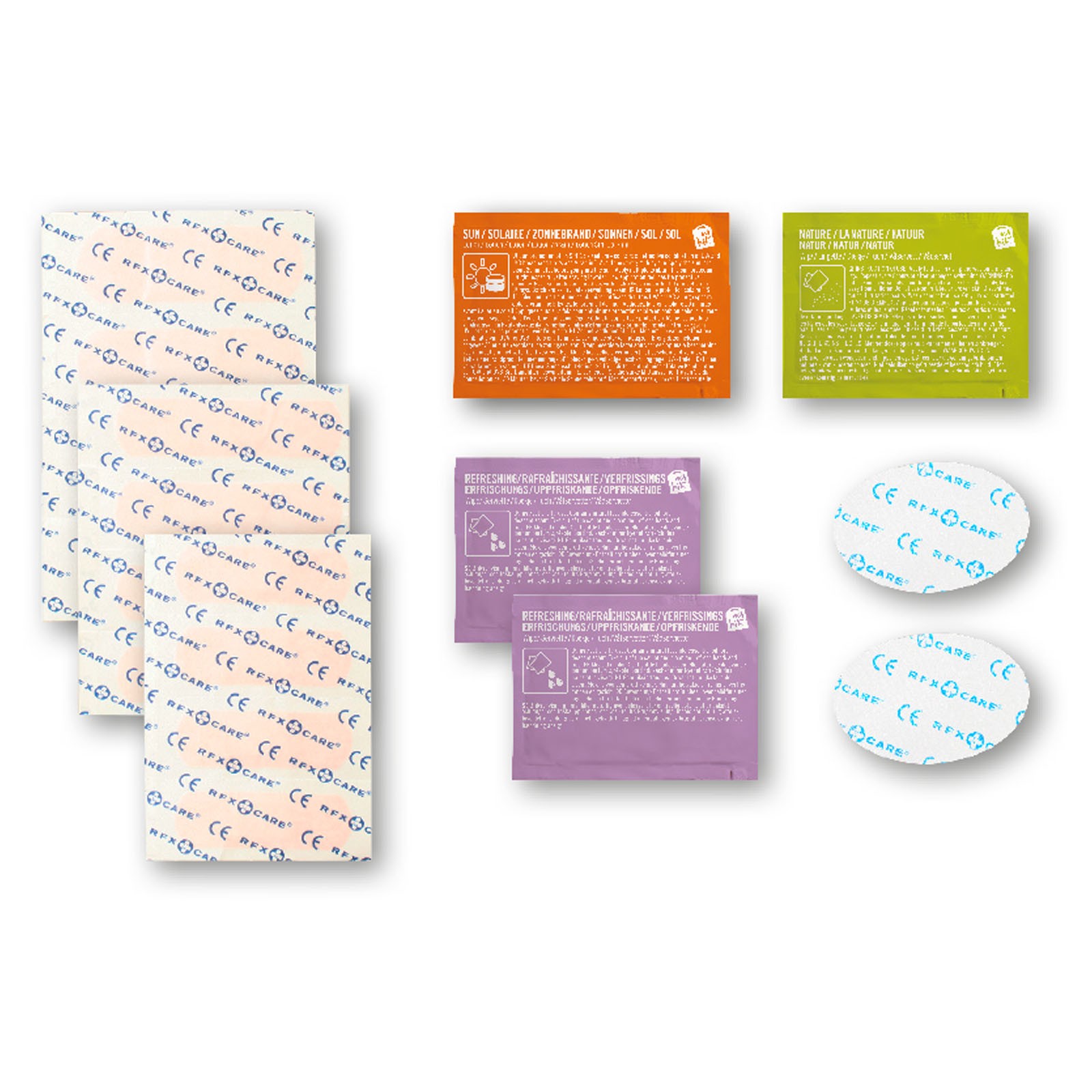 Pochette pratique en polyester avec porte-clés pouvant contenir 16 articles de premiers soins. Le kit contient une paire de ciseaux (9 cm), 2 cotons-tiges pour nettoyer la peau, 1 bandage élastique (4 mètres x 6 cm), 2 boules de coton (0,5 g), 3 épingles de sûreté (3,6 cm), 5 sparadraps (45x19 mm) et 2 épingles à coton (8 cm). Idéale pour les voyages, les festivals, les événements et autres activités de plein air. Présente une grande surface de marquage. Une trousse de premiers soins est considérée comme un dispositif médical et est réglementée par la directive 93/42/CEE, fondée sur l'utilisation prévue : « Le diagnostic, la prévention, la surveillance, le traitement ou l'atténuation de la maladie ». Ce dispositif médical appartient à la CLASSE I, Is.