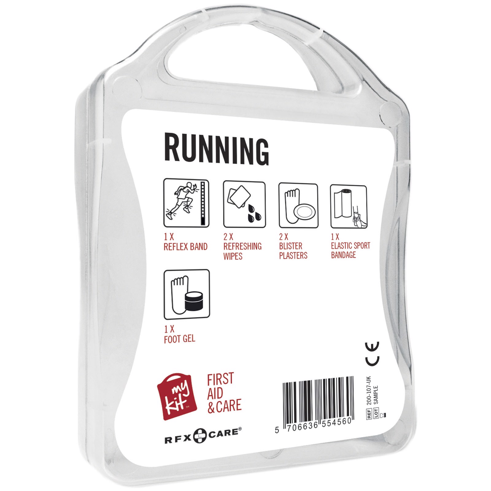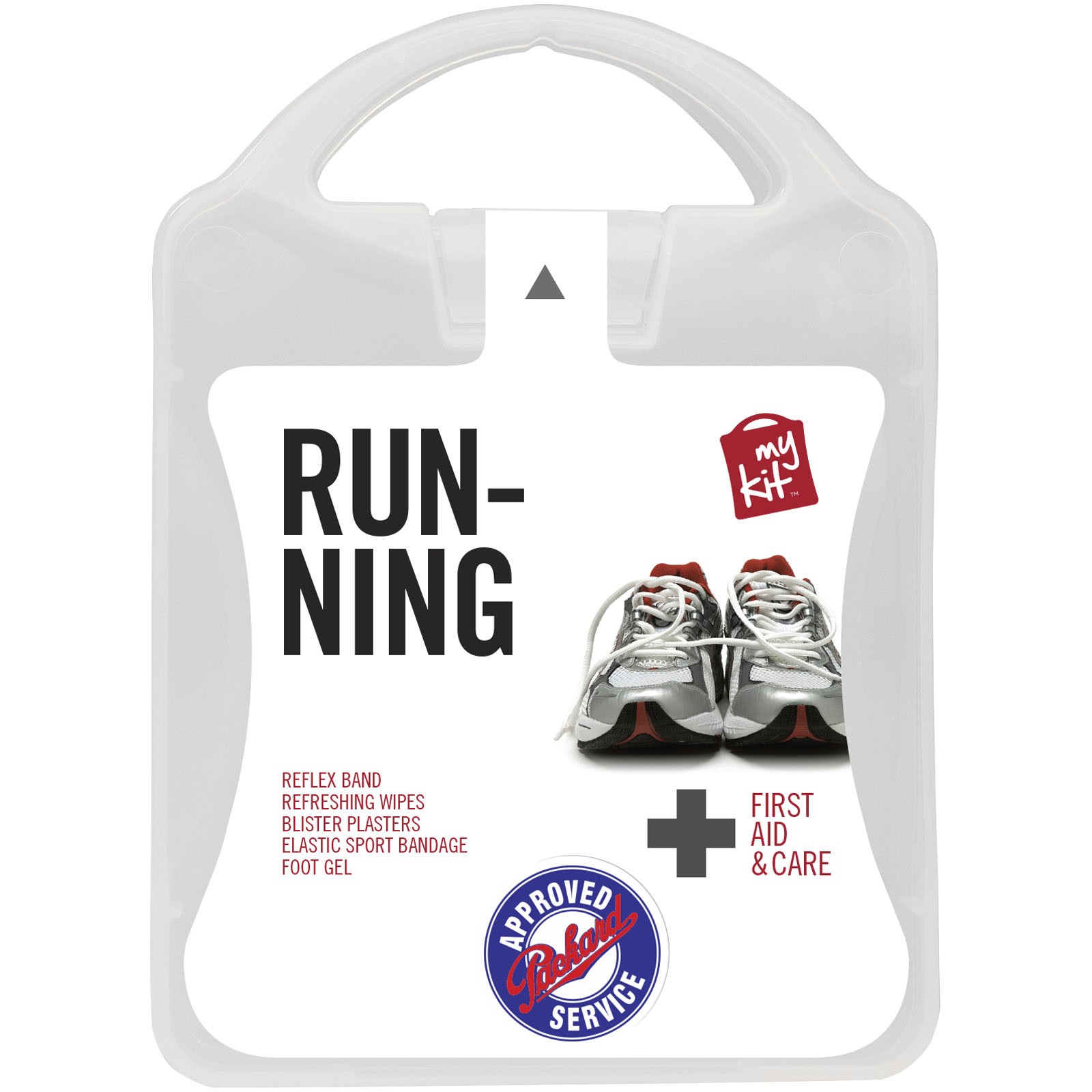 Le kit running vous permet de vous rafraichir après une longue course, d'être visible avec la bande réfléchissante et de parer aux petites blessures. Contient:1 bande réfléchissante,2 lingettes rafraichissantes, 2 pansements, 1 bandage élastique pour le sport, 1 gel pour les pieds. Tous les contenus à l'intérieur des kits sont conformes à la législation européenne. Le prix comprend l'étiquette personnalisée.
