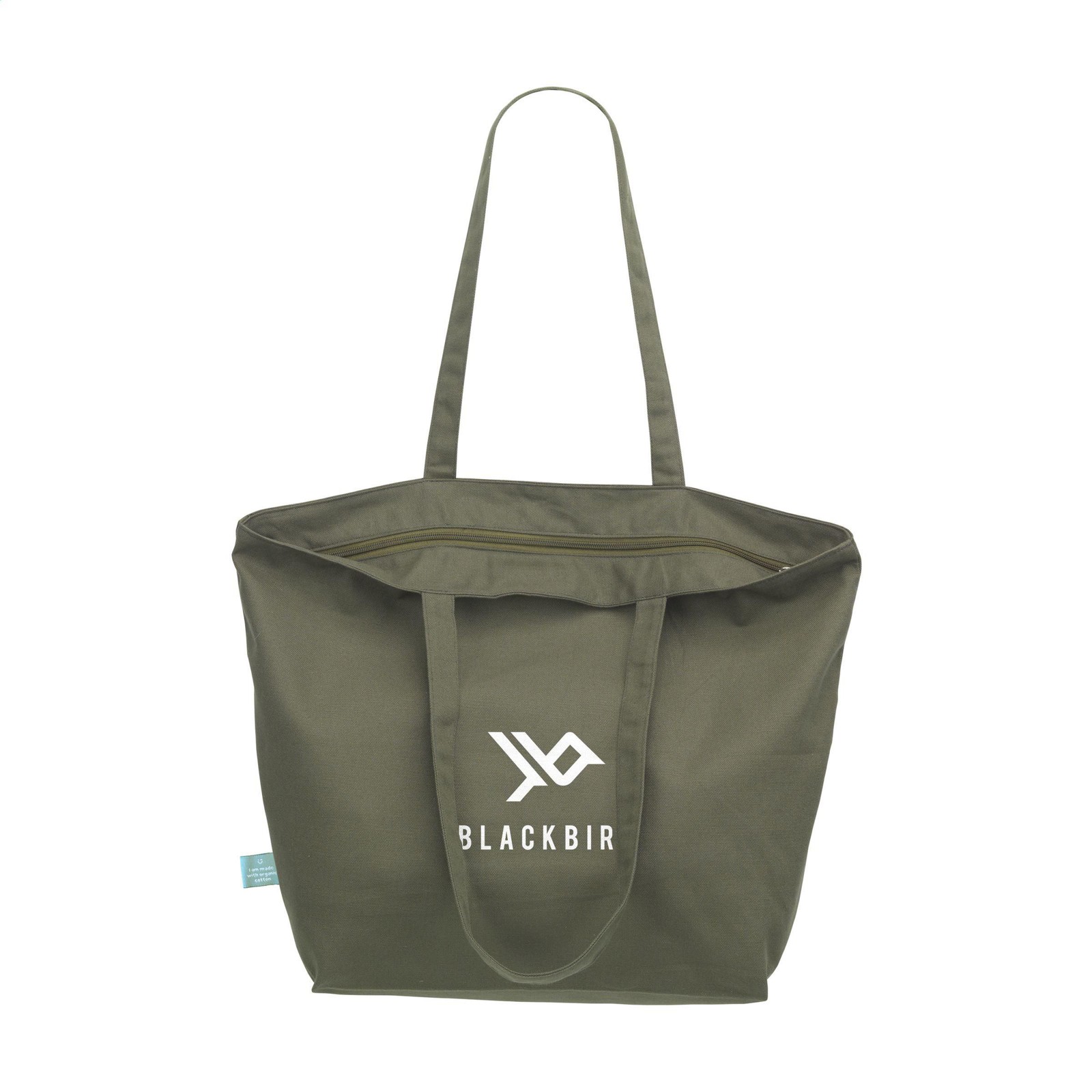 Sac à provisions recyclé avec longues poignées en toile biologique de qualité extra-lourde (320 g/m²), 100% tissée à plat. Avec de longues poignées et une fermeture à glissière. Ce sac généreux et robuste offre beaucoup d'espace. Capacité env. 28 litres.