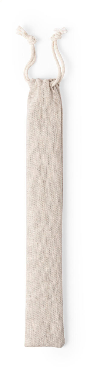Ensemble de 2 pailles en bambou naturel réutilisables et brosse de nettoyage dans une pochette en coton. Le diamètre et la surface des pailles peut varier.
