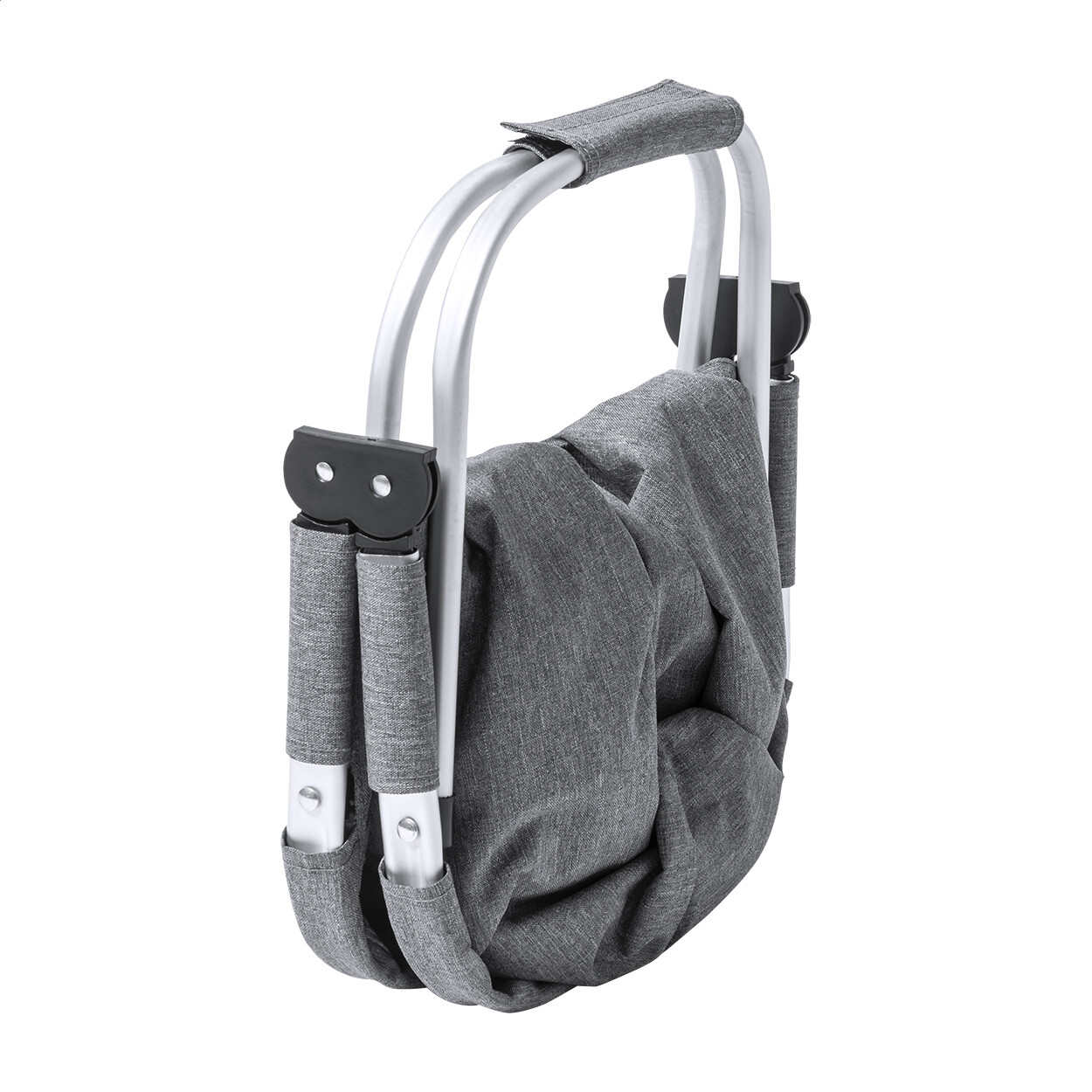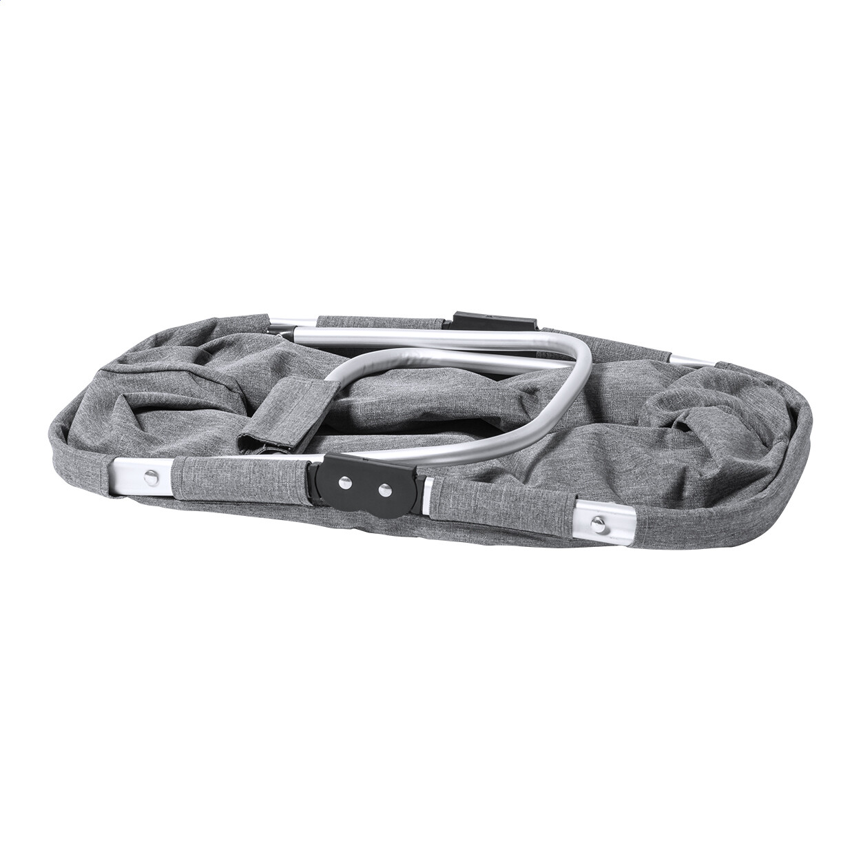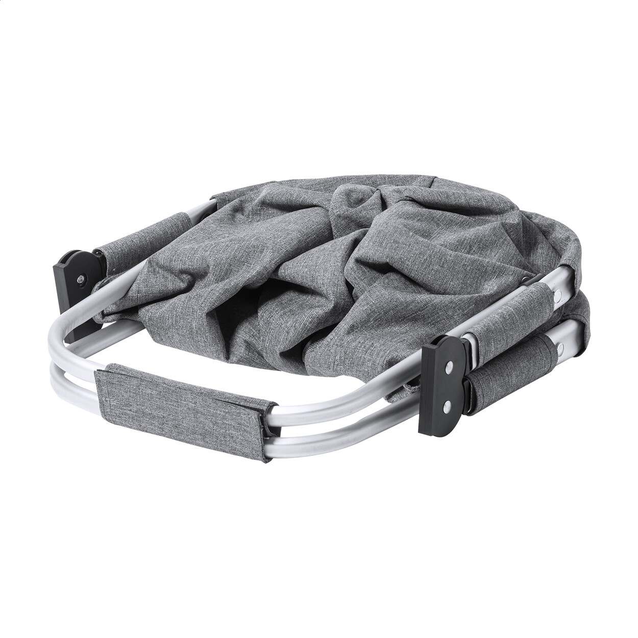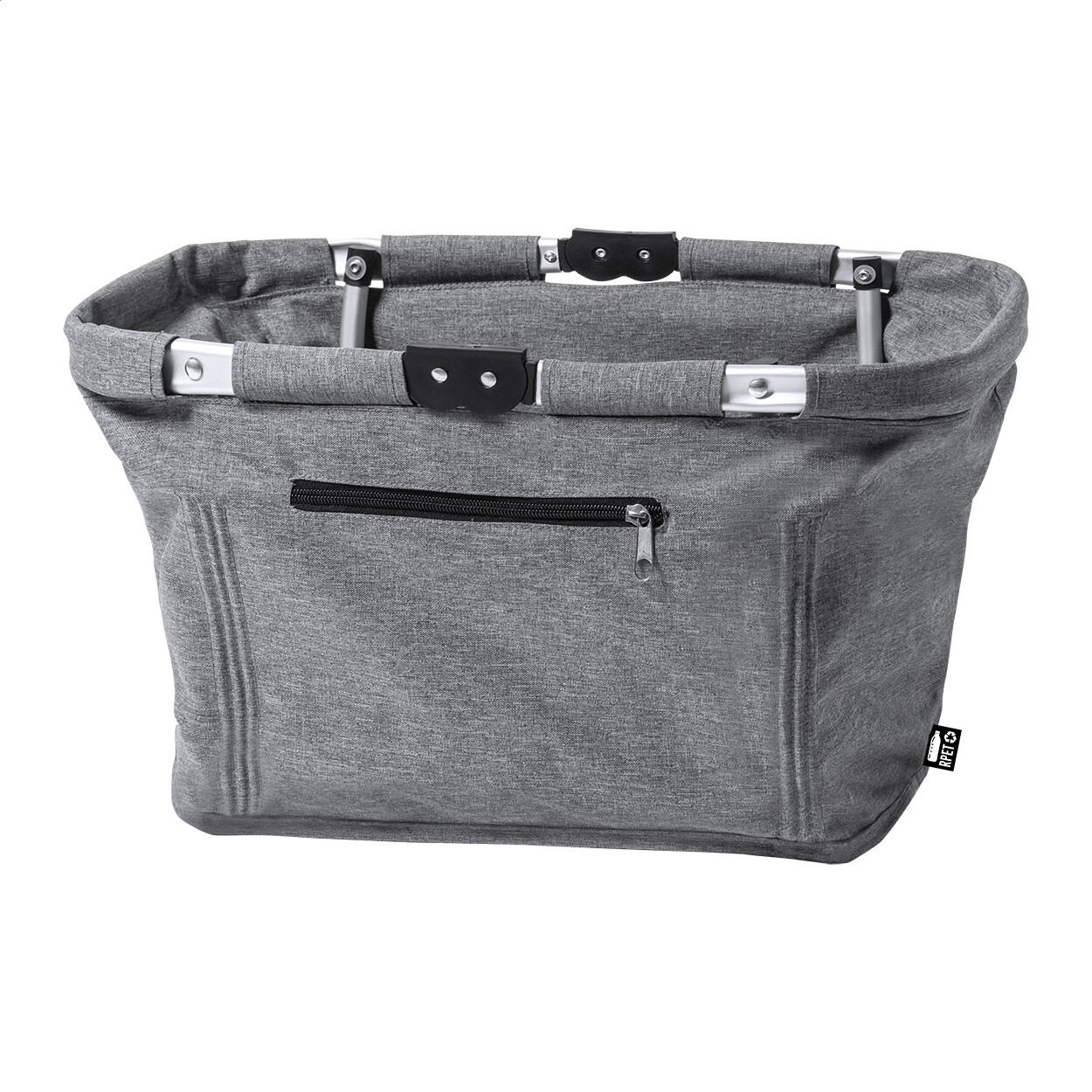 Panier pique-nique pliable en polyester 600D RPET, avec cadre en aluminium et poche frontale zippée. Labélisé RPET.